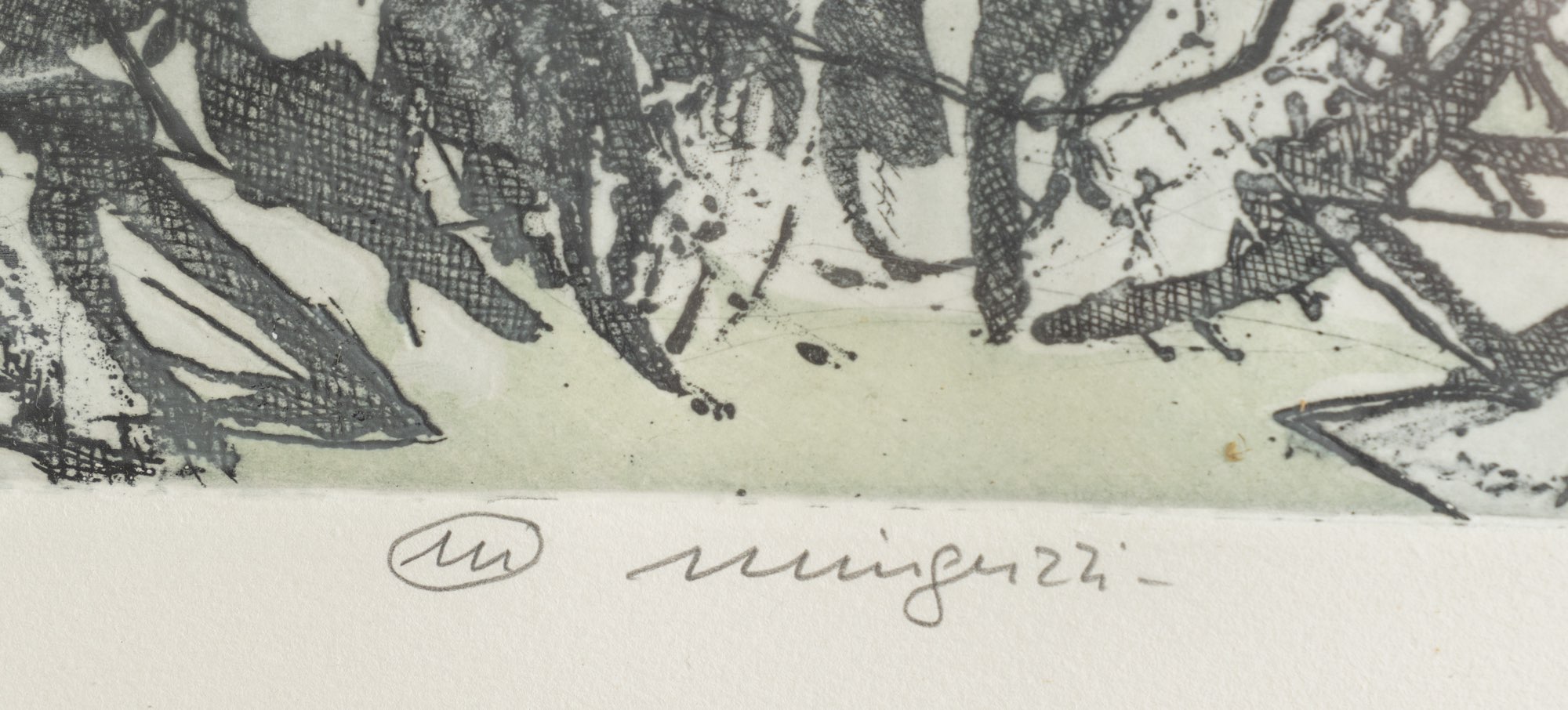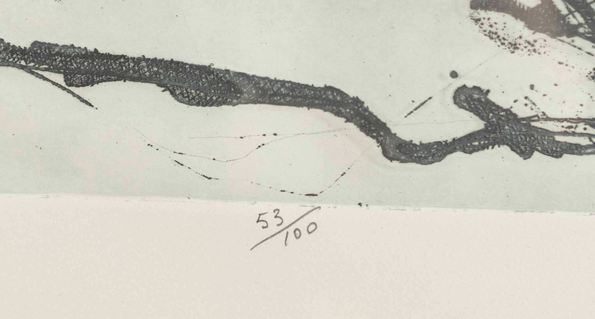 Incisione acquaforte su carta, firmata in basso a destra, presenta numerazione 53/100 in basso a sinistra, lastra H cm 34x49 – con cornice H cm 56x77,5