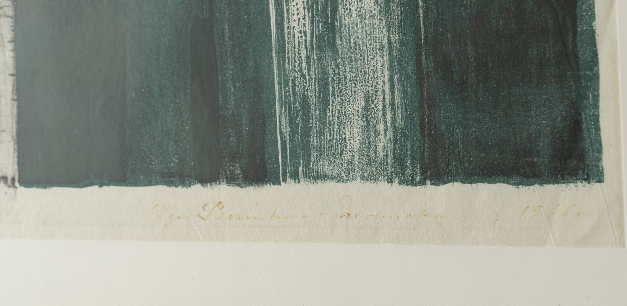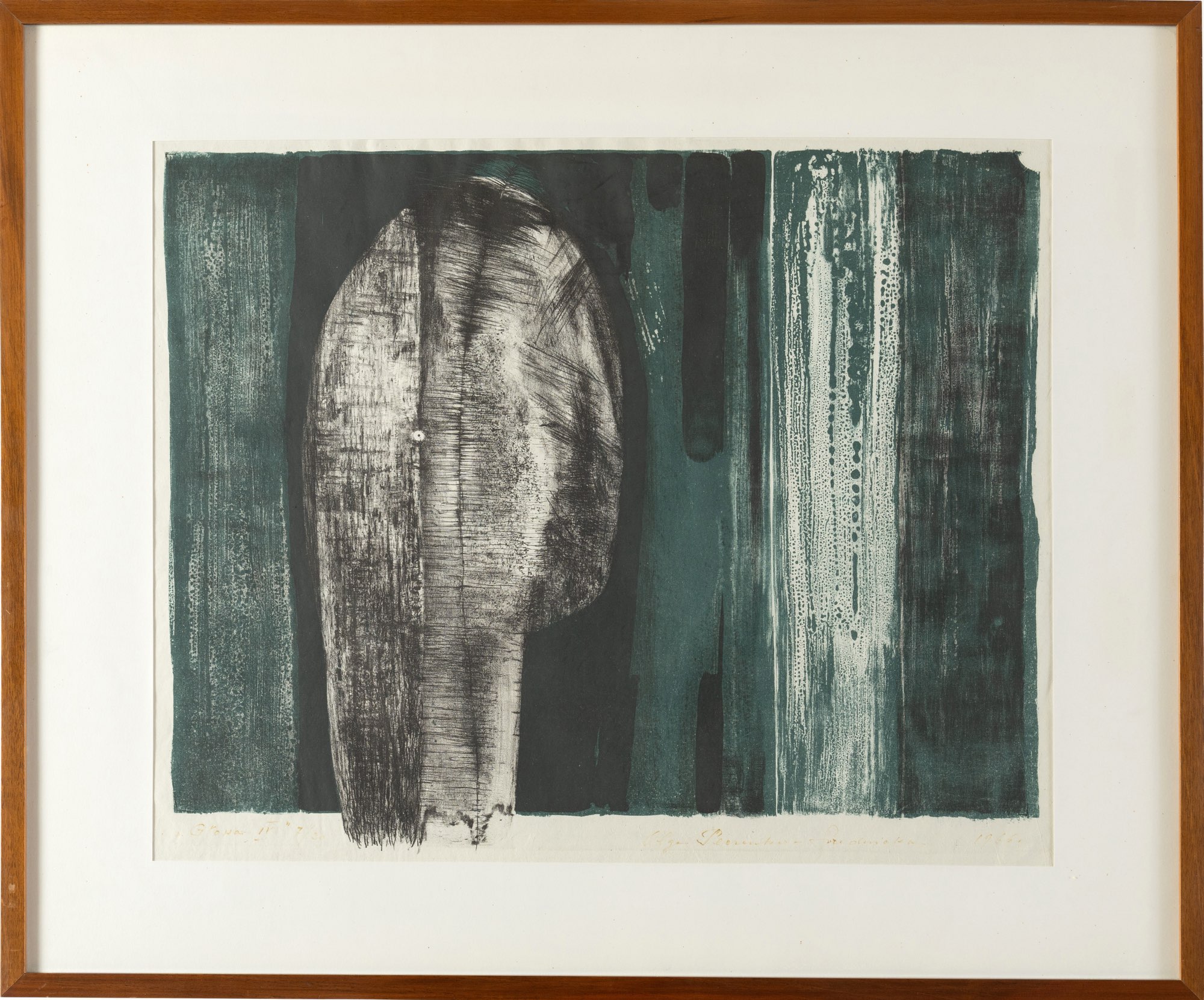 Litografia a colori su carta, firmata e datata in basso a destra, reca in basso a sinistra titolo e numero di tiratura 7/20, reca al retro iscrizione relativa a un’esposizione al Museo Civico di Bologna nel 1967, Foglio H cm 57x69