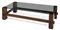 Tavolino rettangolare con struttura in legno e piano in cristallo.