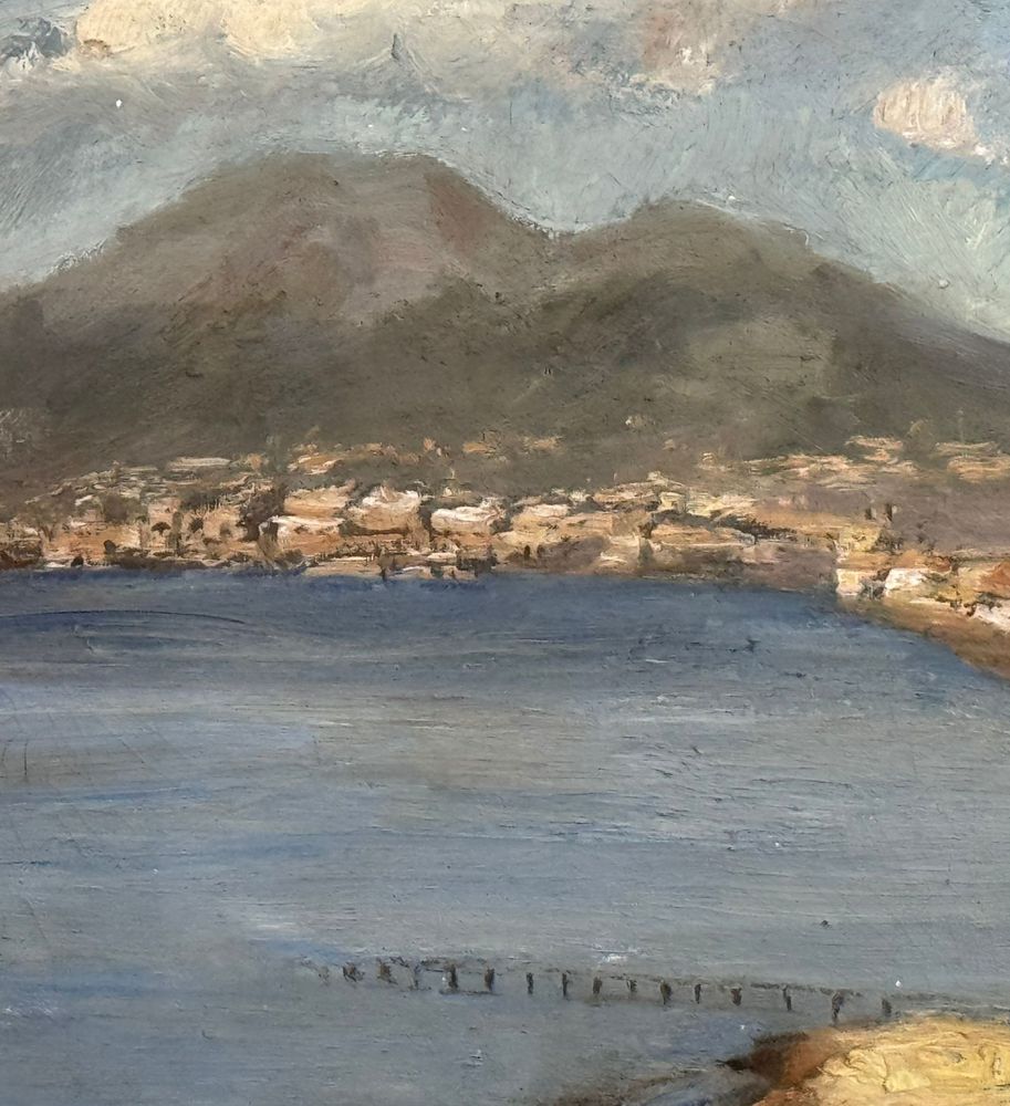 Dipinto olio su tavola, periodo primi anni del XX secolo, scuola Italiana, raffigurante Veduta del Golfo. Dimensioni compreso cornice: 48x34 cm. Dimensioni interno cornice: 36x23 cm. Reca firma in basso a destra da Volpe. Opera in buone condizioni.
