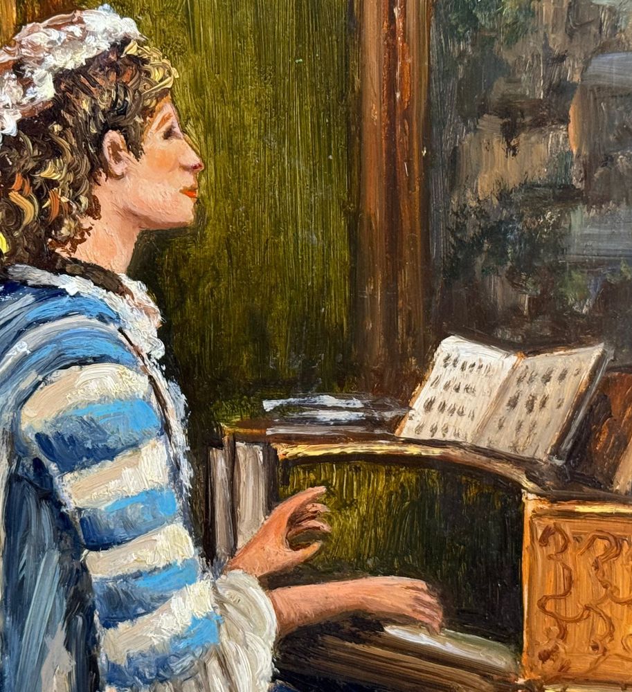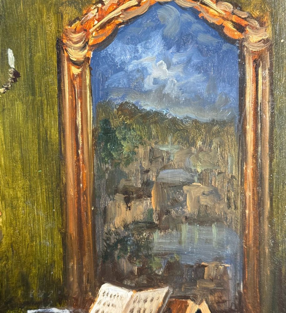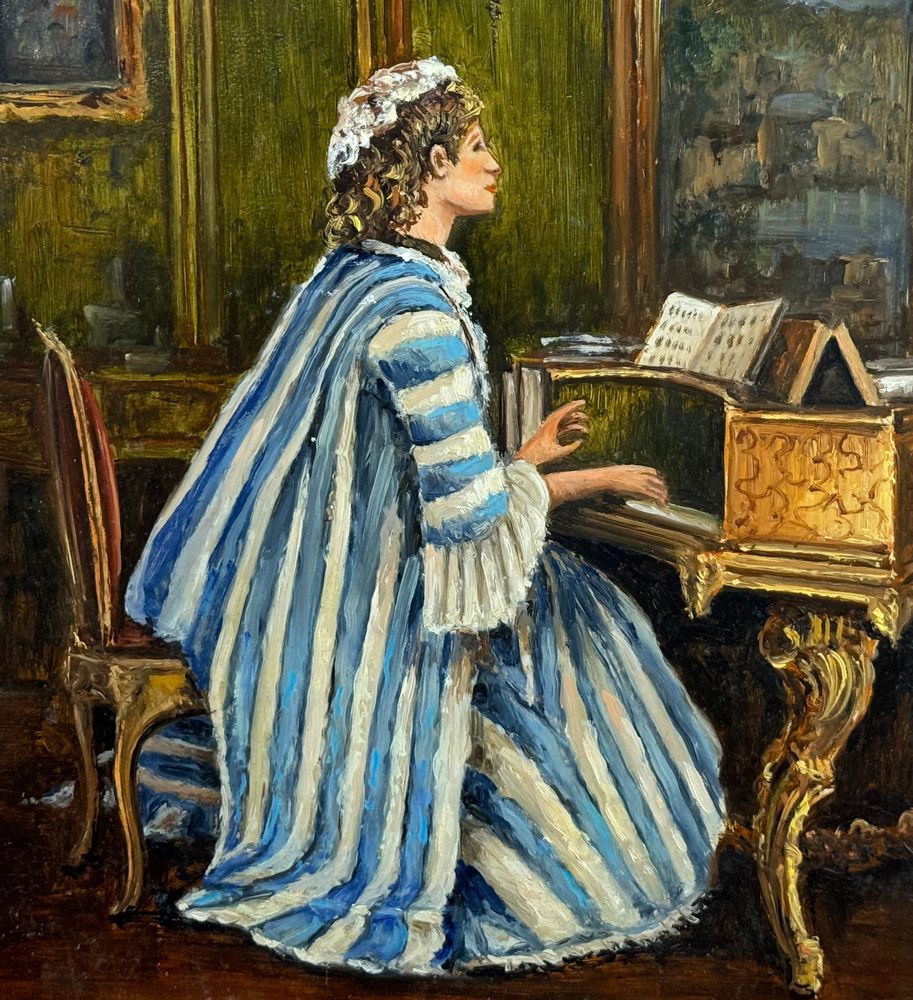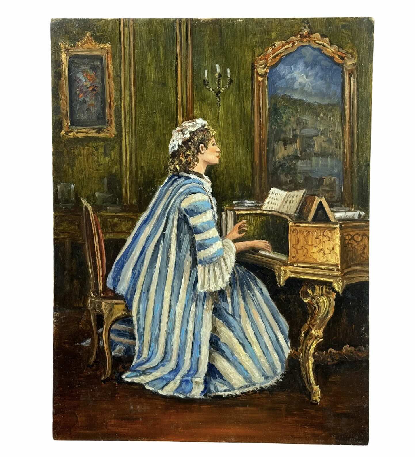 Dipinto olio su tavola, periodo primi anni del XX secolo, scuola Italiana, raffigurante Lezione al pianoforte. Dimensioni: 30x40 cm. Da artista anonimo. Opera in buone condizioni.