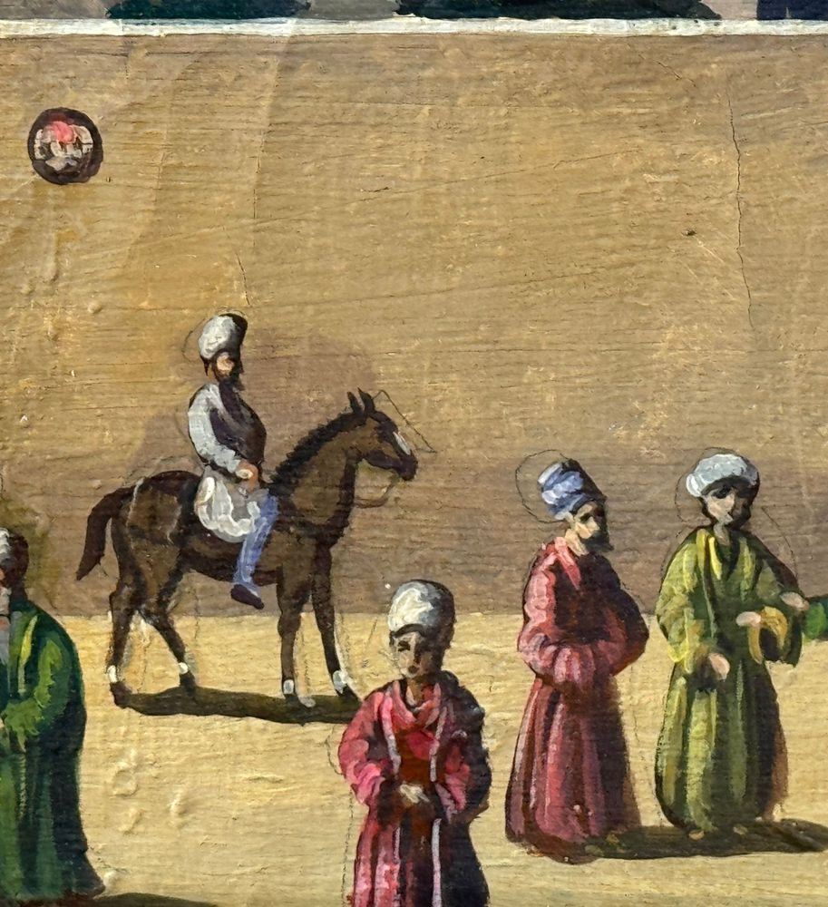 Dipinto olio su tela, periodo prima metà del XX secolo scuola Europea, raffigurante Scena orientale con personaggi. Dimensioni compreso cornice: 59x49 cm. Dimensioni interno cornice: 50x40 cm. Reca firma in basso a sinistra da artista non identificato. Opera in buone condizioni con lievi segni di vissuto come da foto allegate.