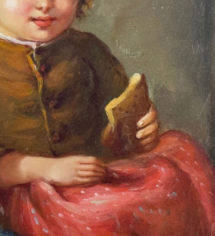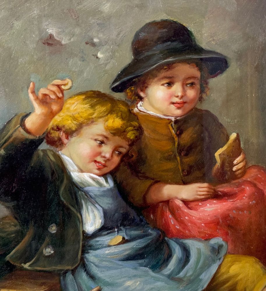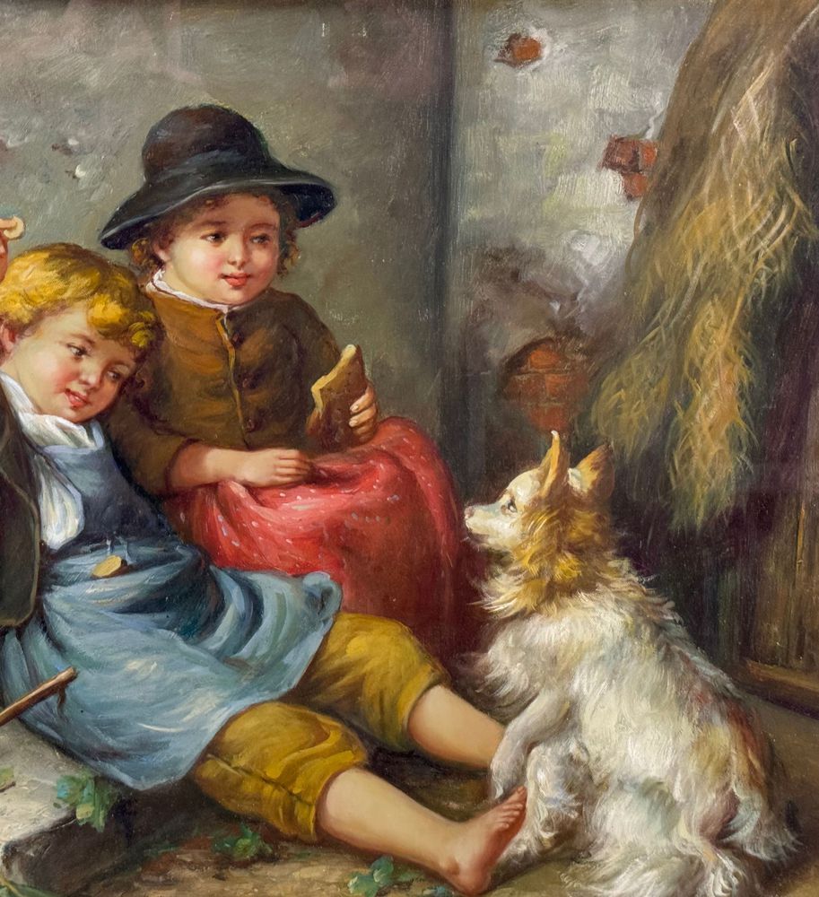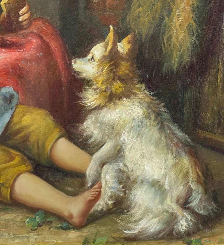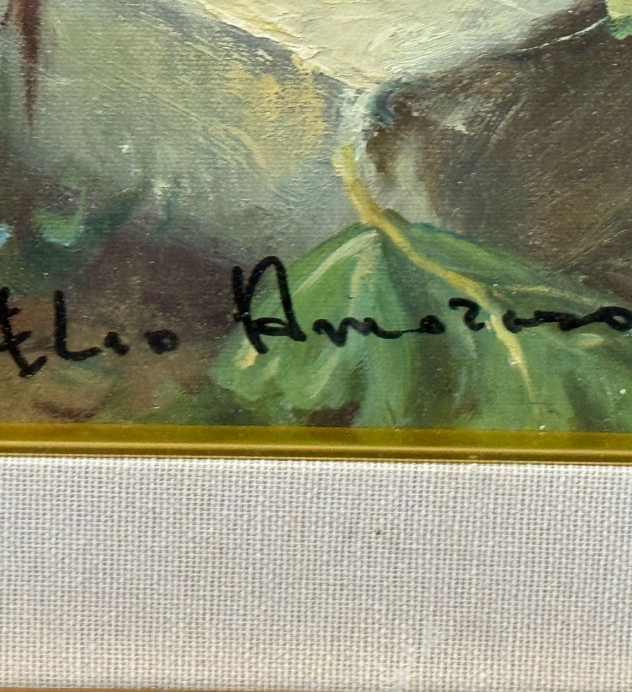 Dipinto olio su tela, periodo XX secolo scuola Italiana, raffigurante Giochi di bambini con cane. Dimensioni compreso cornice: 76x66 cm. Dimensioni interno cornice: 60x50 cm. Reca firma in basso a sinistra da Elio Amoroso. Opera in buone condizioni.