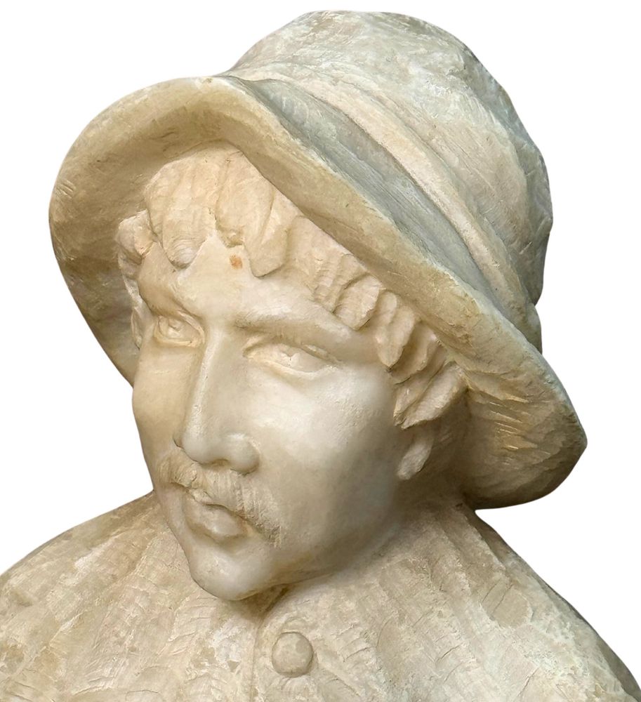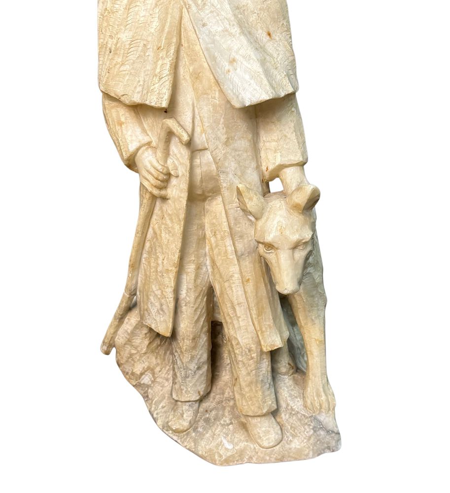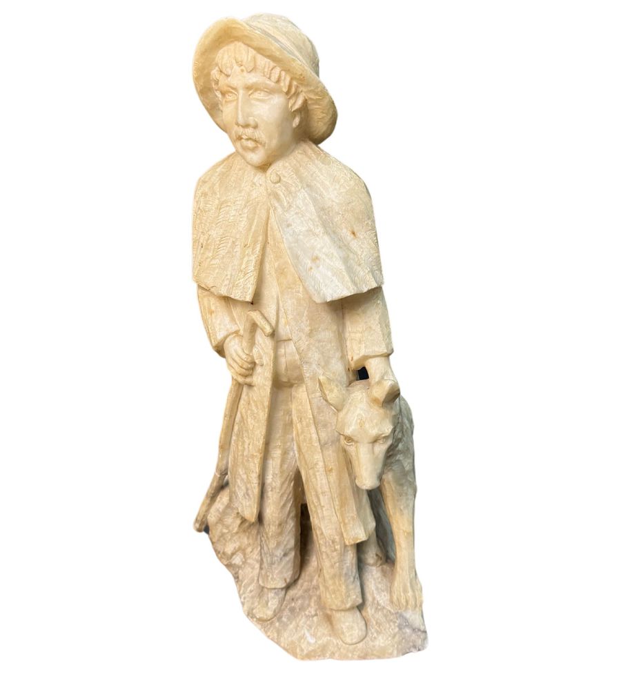 Scultura in marmo bianco con patina originale dell’epoca, periodo seconda metà del XIX secolo, raffigurante Pastore con cane. Dimensioni: 52x24x18 cm. Reca firma da artista non identificato. Opera in buone condizioni e di eccellente qualità artistica.