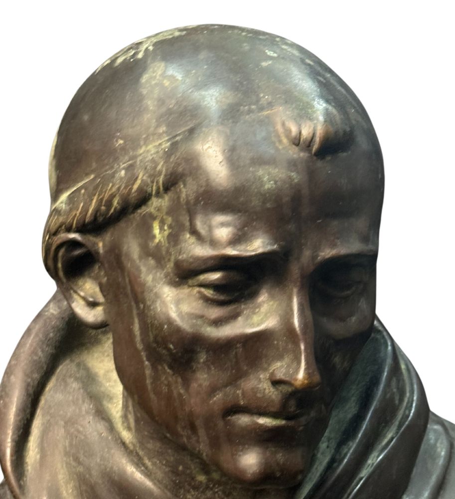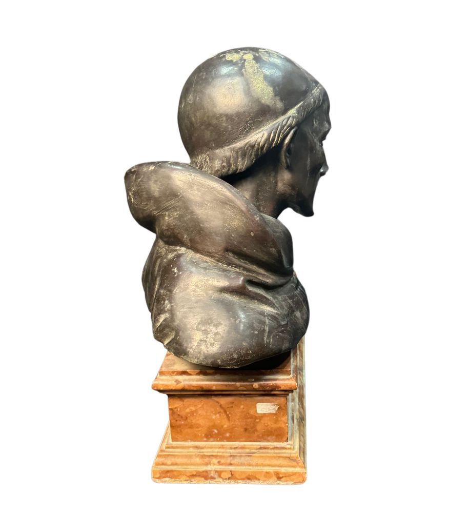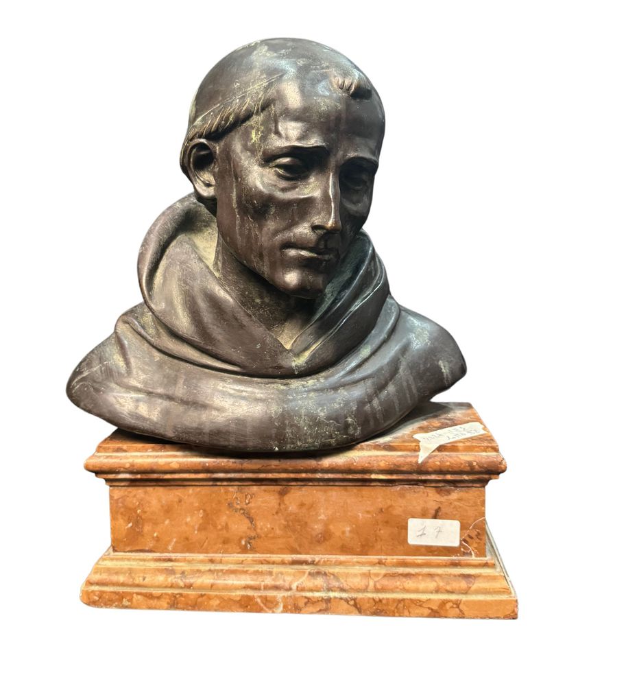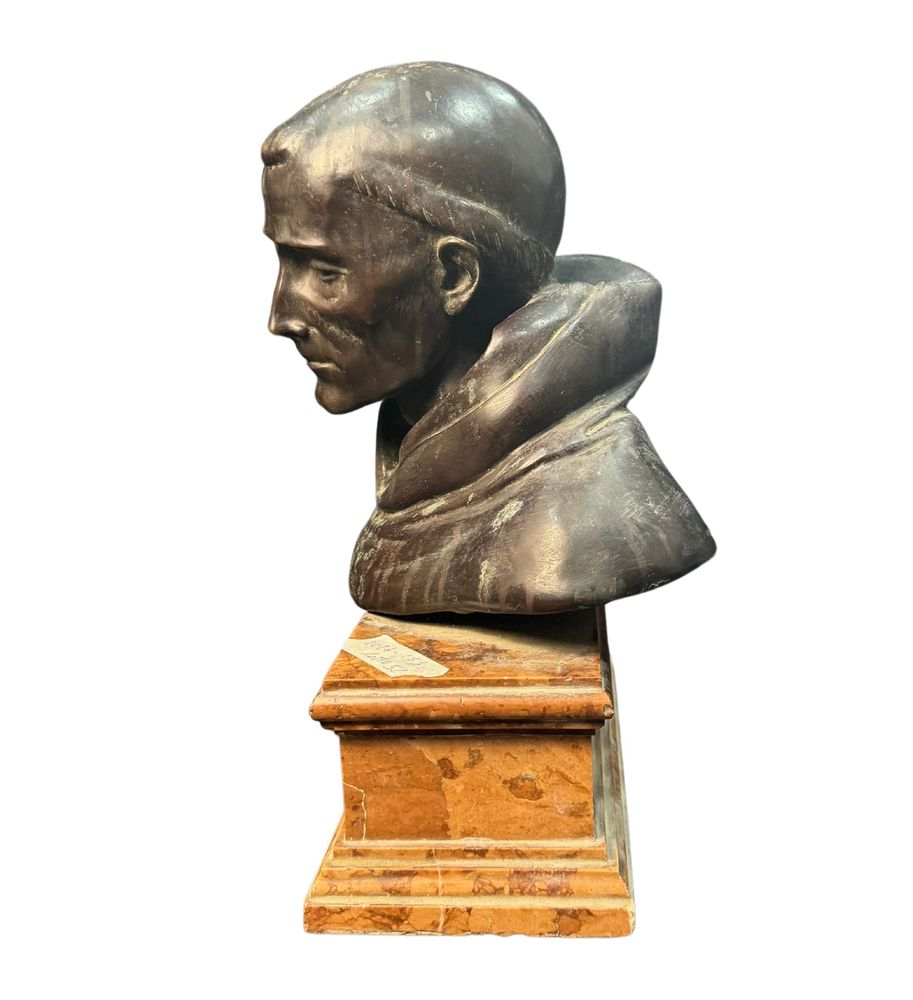 Scultura in bronzo, patinato a cera persa su base in marmo, periodo prima metà del XX secolo, raffigurante Busto di Cardinale. Reca firma Fonderia Laganà Napoli. Dimensioni: 42x34x20 cm. Opera in buone condizioni.