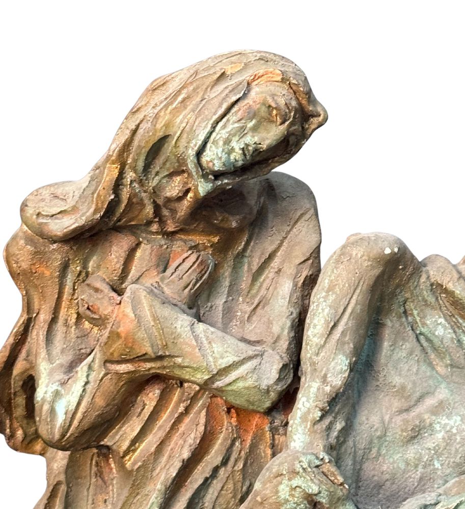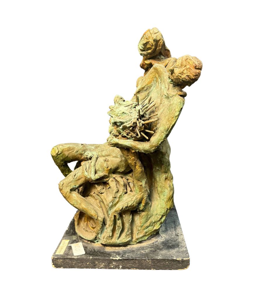 Scultura in terracotta, periodo XX secolo, raffigurante Sacra famiglia. Attribuito a Gabriele Zambardino. Opera in discrete condizioni, lievi difetti e mancanze come da foto allegate. Dimensioni: 42x23x23 cm.