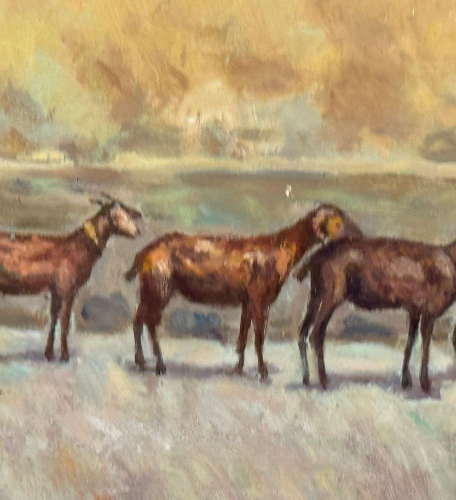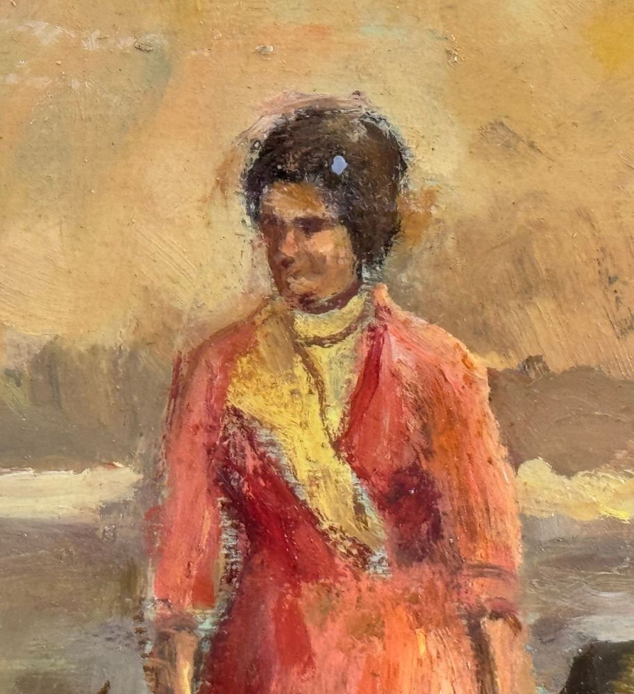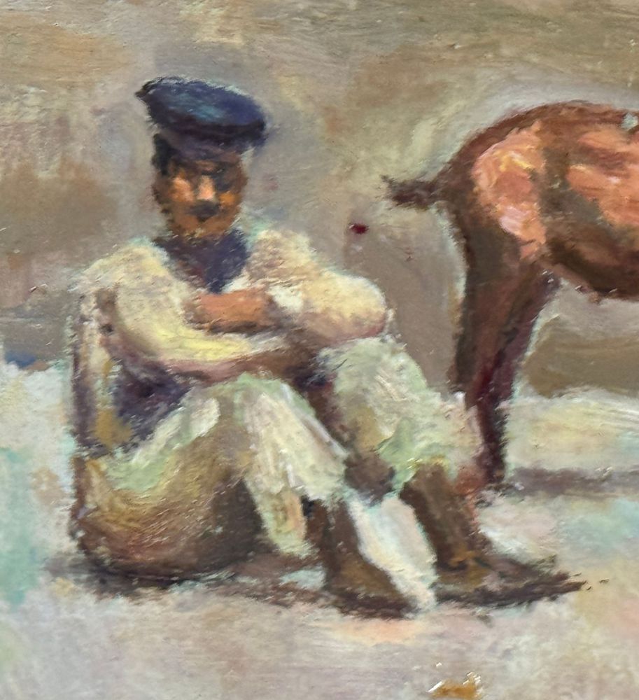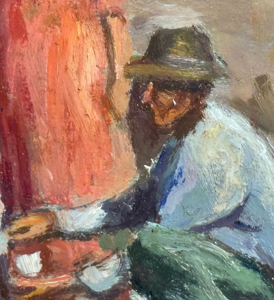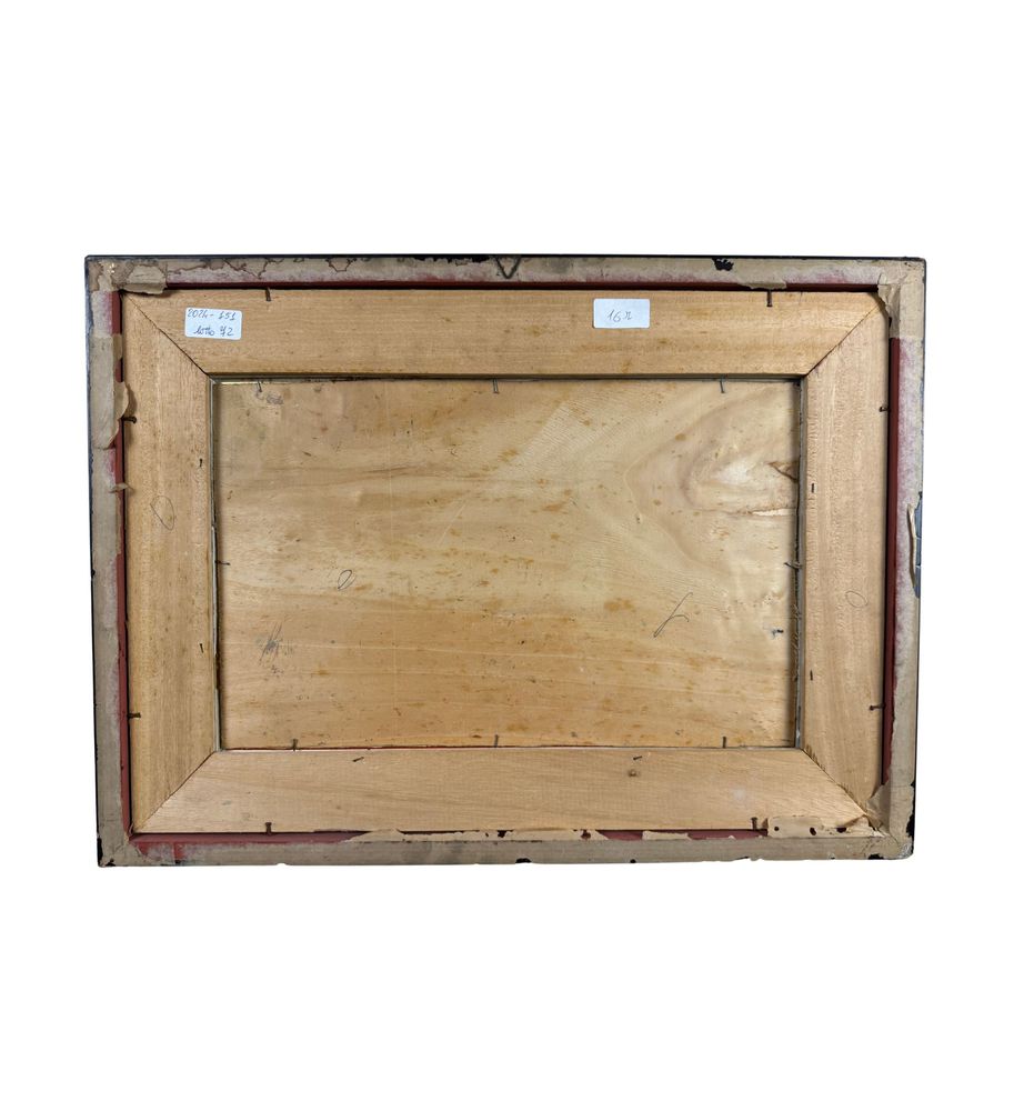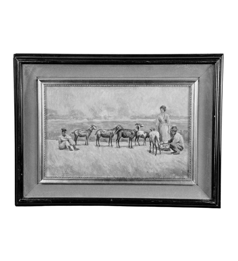 Dipinto olio su tavola, periodo XX secolo, scuola Italiana, raffigurante Personaggi con gregge. Dimensioni compreso cornice: 56x42 cm. Dimensioni interno cornice: 40x25 cm. Reca firma in basso a sinistra da Scognamiglio Giuseppe (Portici 1901-1985 ). Opera in buone condizioni.