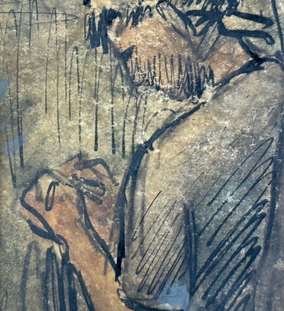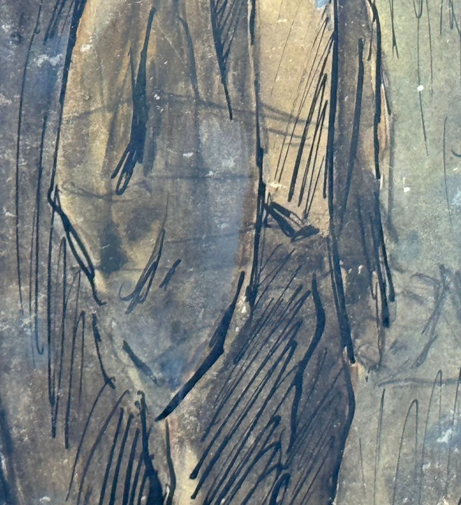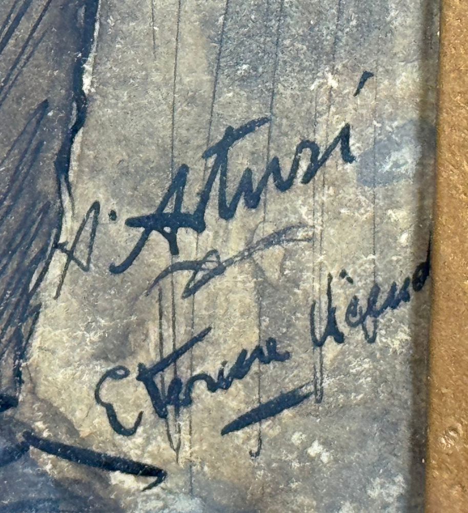 Disegno su cartoncino, periodo XX secolo scuola Italiana, raffigurante Due personaggi. Dimensioni compreso cornice: 33x39 cm. Dimensioni interno cornice: 13,5x19,5 cm. Reca firma in basso a destra da Antonio Asturi. Opera in buone condizioni.