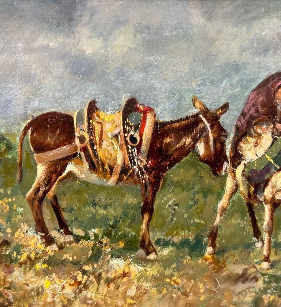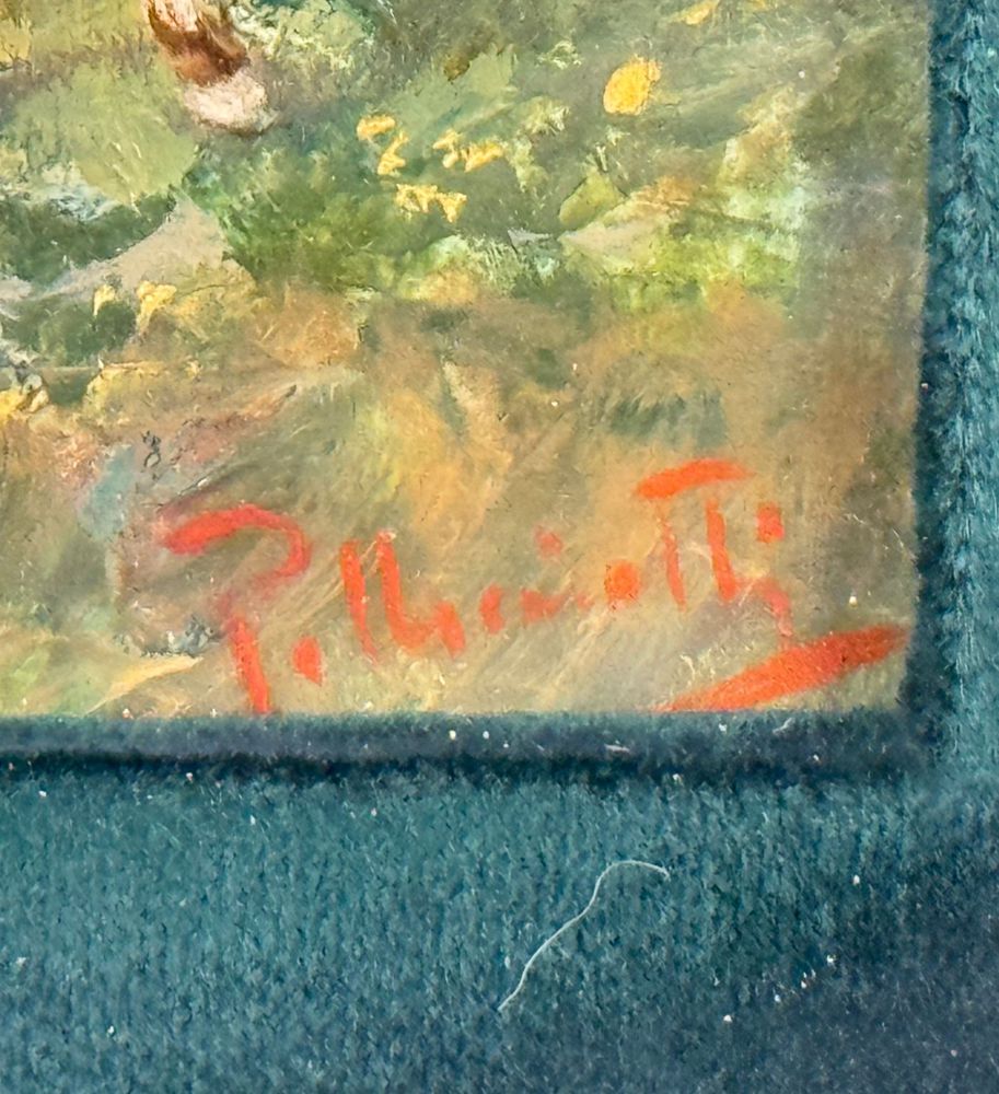 Dipinto olio su cartoncino, periodo XX secolo scuola Italiana, raffigurante Cavalli. Dimensioni compreso cornice: 28x34,5 cm. Dimensioni interno cornice: 11x14 cm. Attribuito a Tito Pellicciotti, reca firma in basso a destra. Opera in buone condizioni e di ottima qualità artistica.