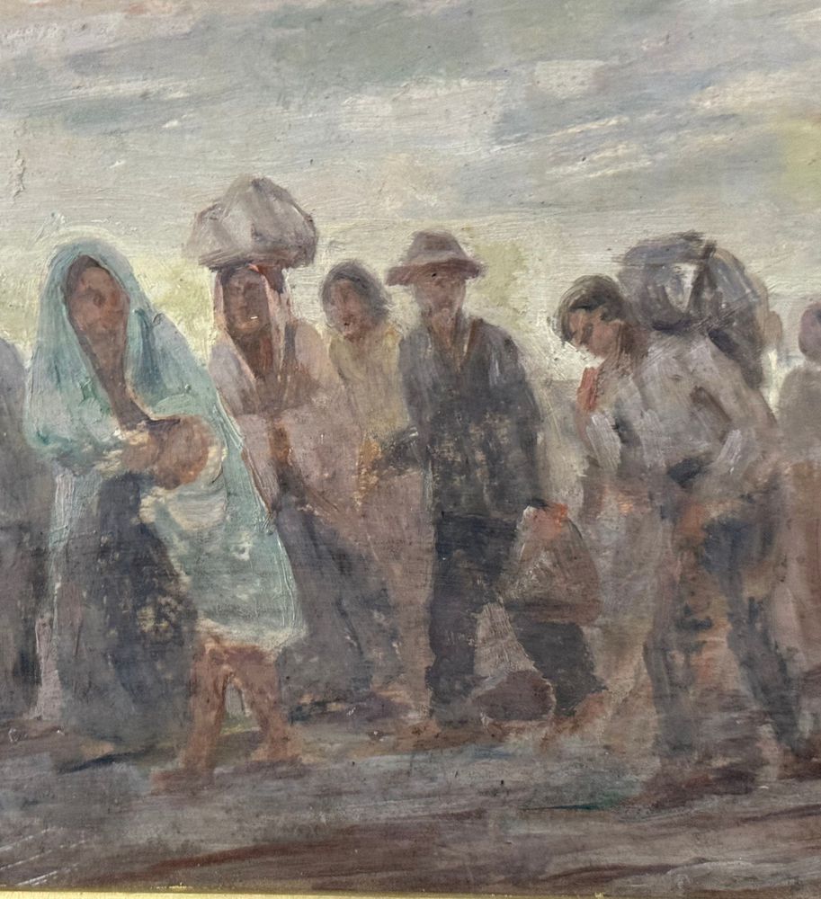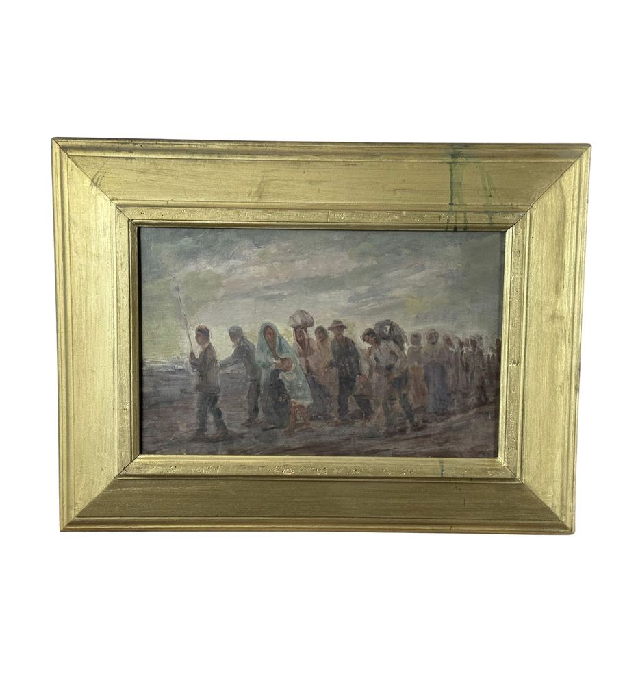 Dipinto olio su tavola, periodo XX secolo scuola Italiana, raffigurante "La fuga". Dimensioni compreso cornice: 65x49 cm. Dimensioni interno cornice: 46x29 cm. Da artista anonimo. Opera in buone condizioni.