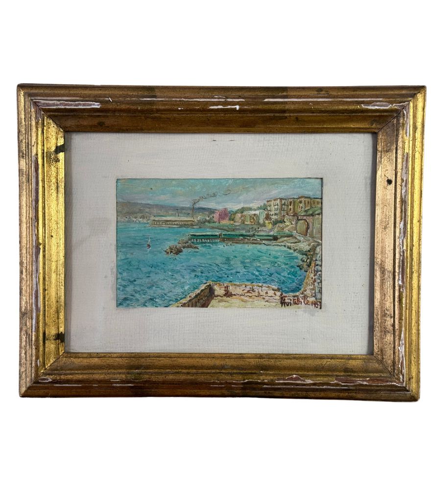 Dipinto olio su tavola, periodo XX secolo scuola Italiana, raffigurante Scorcio di marina. Dimensioni compreso cornice: 45x35 cm. Dimensioni interno cornice: 23x15 cm. Reca firma in basso a destra da L. Avitabile. Opera in buone condizioni.