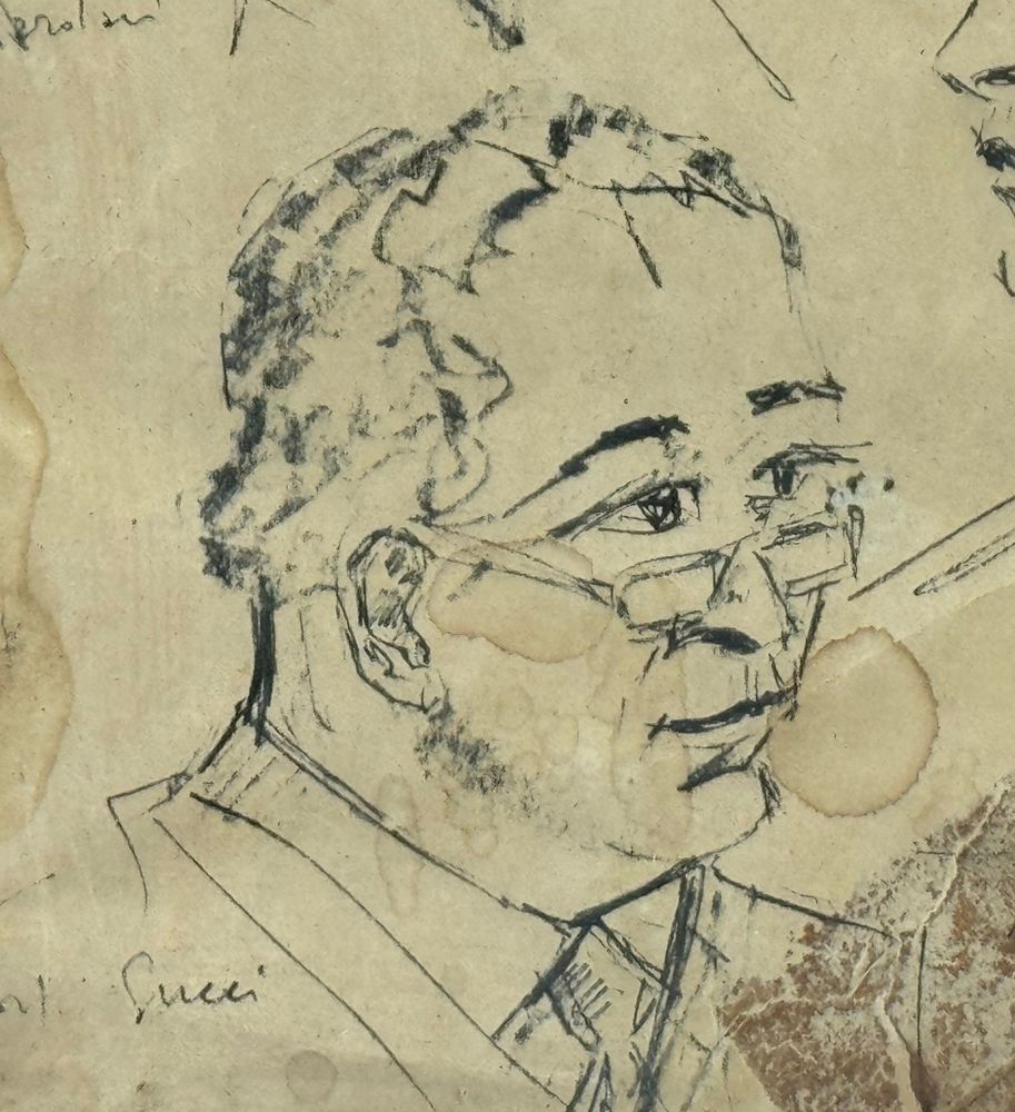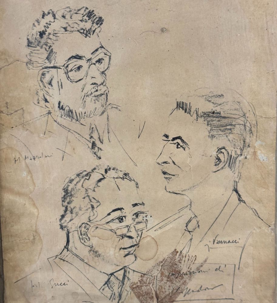 Disegno su carta, periodo XIX/XX secolo scuola Italiana, raffigurante Tre volti maschili. Dimensioni compreso cornice: 27,5x35 cm. Dimensioni interno cornice: 21x30 cm. Reca firma in basso a destra da artista non identificato. Opera in discrete condizioni.