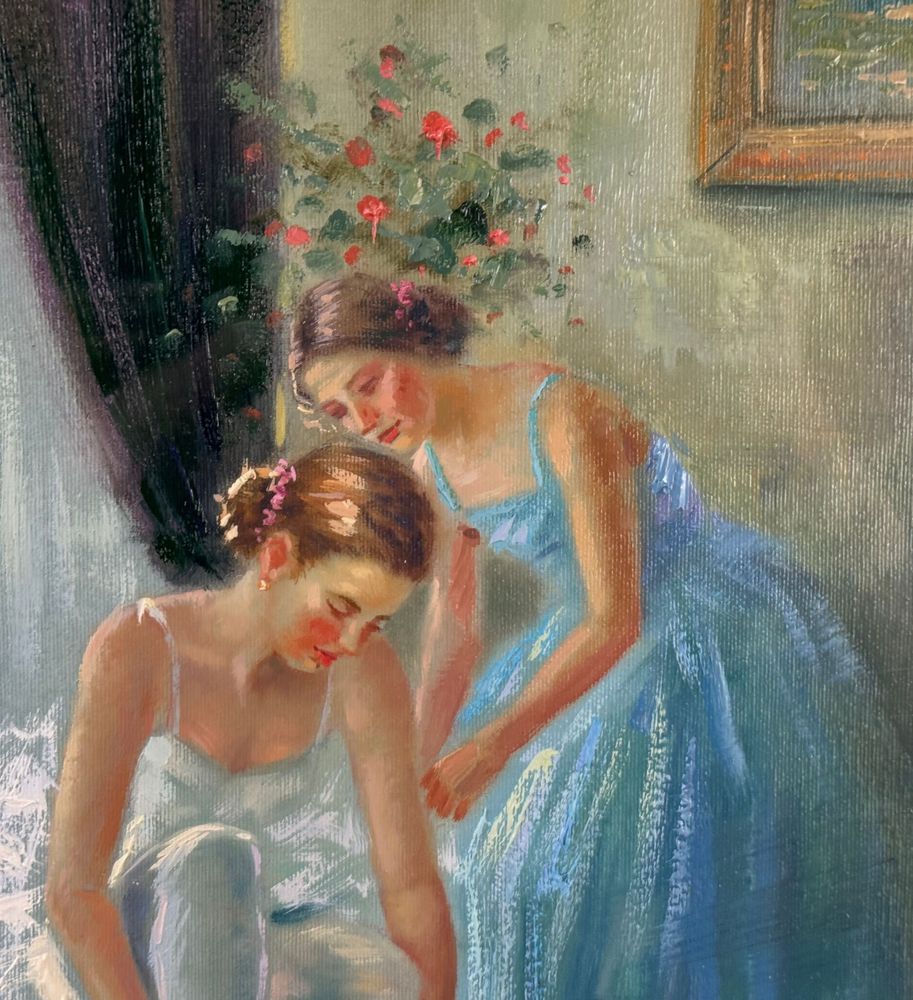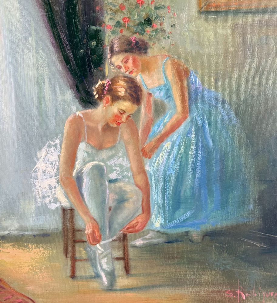 Dipinto olio su tela periodo XX secolo scuola Italiana, raffigurante Preparazione al ballo. Dimensioni compreso cornice: 66x76 cm. Dimensioni interno cornice: 40x50 cm. Reca firma in basso a destra da Salvatore Rodriguez. Opera in buone condizioni.