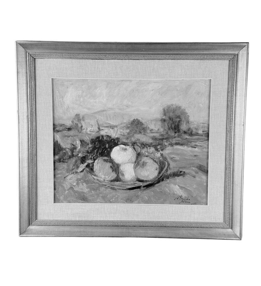 Dipinto olio su tavola, periodo XX secolo (1957) scuola Italiana, raffigurante Natura morta. Dimensioni compreso cornice: 78x68 cm. Dimensioni interno cornice: 56x46 cm. Reca firma in basso a destra da Placido Errico (Napoli 1909 - 1983). Opera in buone condizioni.