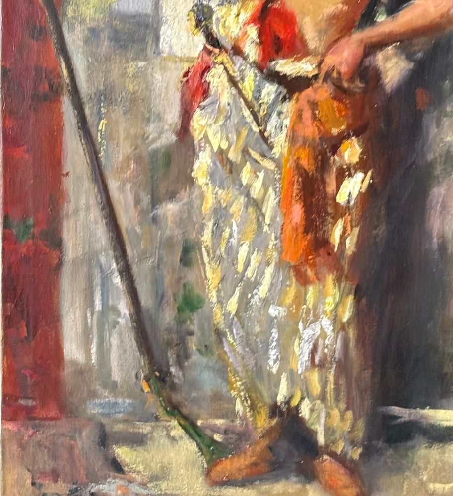 Dipinto olio su tela, periodo XX secolo, scuola Italiana, raffigurante Personaggio arabo. Dimensioni: 60x30 cm. Reca firma in basso a destra da artista non identificato. Opera in buone condizioni.