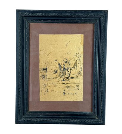 Disegno su carta, periodo XX secolo scuola Italiana, raffigurante Pescatori. Dimensioni compreso cornice: 39,5x49,5 cm. Dimensioni interno cornice: 20x30 cm. Reca firma in basso a destra da Pietro Scoppetta. Opera in buone condizioni con lievi segni di vissuto come da foto allegate.