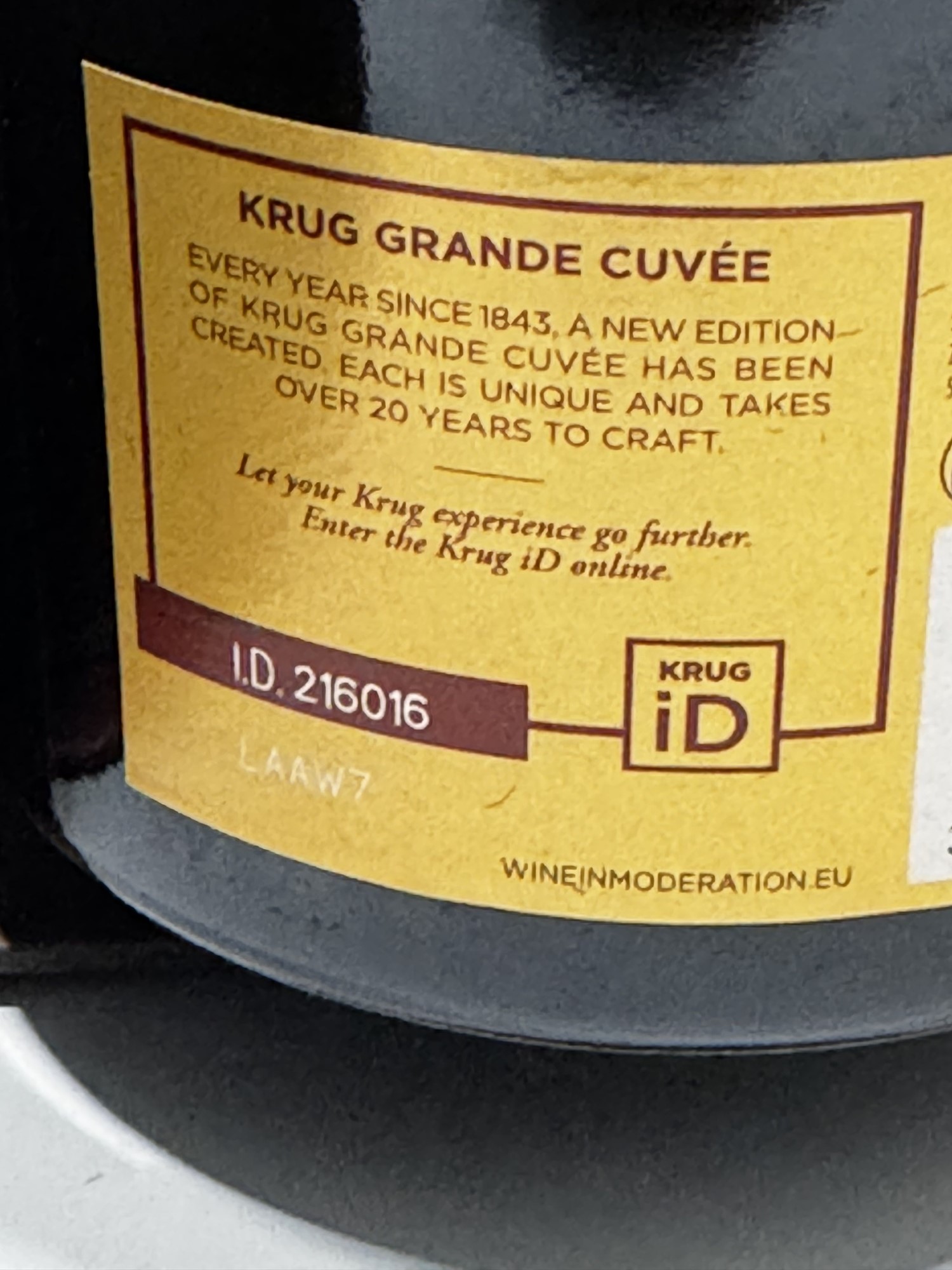 KRUG Champagne, Grande Cuvé 164ème Èdition, Brut. Francia. Gradazione alcolica: 12%. ID 216016. Conservato nella confezione originale.