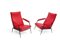 Coppia di poltrone in tondino verniciato e ottone, seduta imbottita in skai.