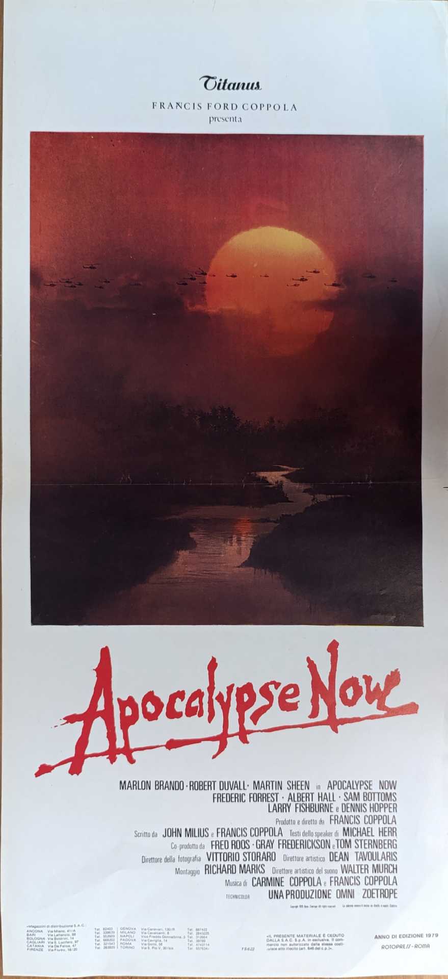 Apocalypse Now, 1979 30X70 Francis Ford Coppola, Marlon Brando, locandina prima edizione Francis Ford Coppola, Marlon Brando, locandina prima edizione