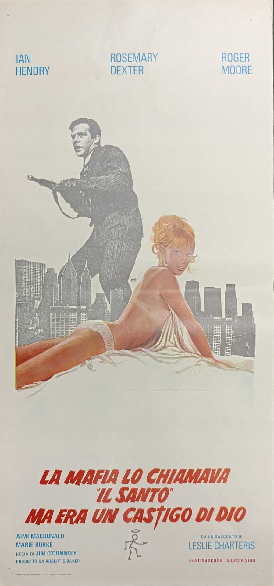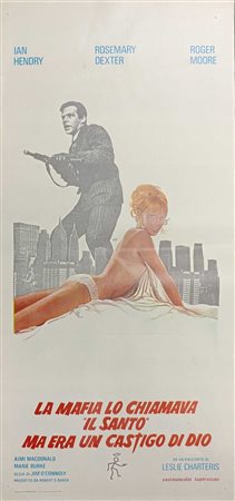 La mafia lo chiamava il Santo ma era un castigo di Dio, 1976 h cm 33X70 Roger Moore,locandina originale Roger Moore,locandina originale