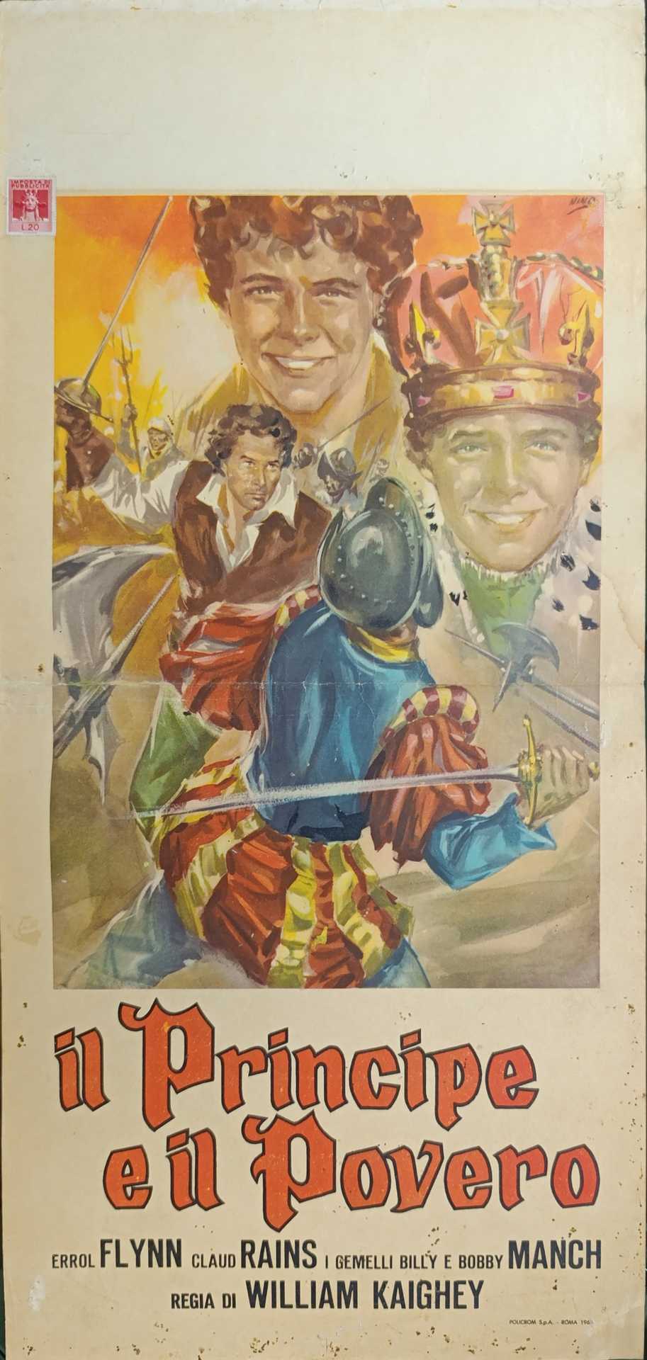 Il principe e il povero, 1963 h cm 33X70 Errol Flynn, locandina originale Errol Flynn, locandina originale