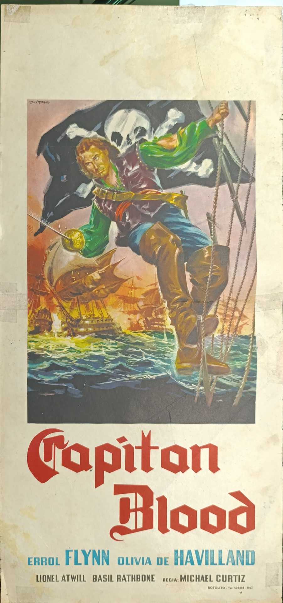 Capitan Blood, 1962 h cm 33X70 Errol Flynn, locandina originale Errol Flynn, locandina originale