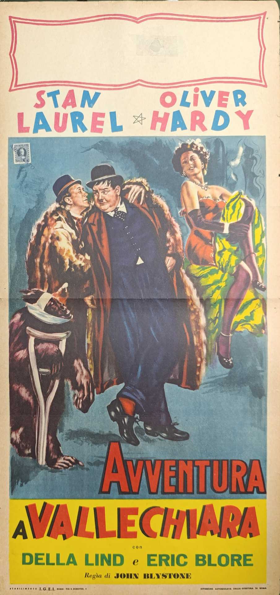 Avventura a valle chiara, 1952 h cm 33X70 Stan Laurel, Oliver Hardy, locandina originale Stan Laurel, Oliver Hardy, locandina originale