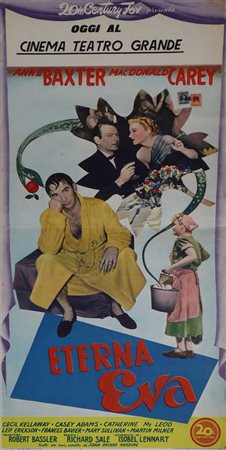 Locandina cinema ''Eterna Eva'', 1952 h cm 78 x cm 36 Prima Edizione, Roma, normali segni d'usoPrima Edizione, Roma, normali segni d'uso