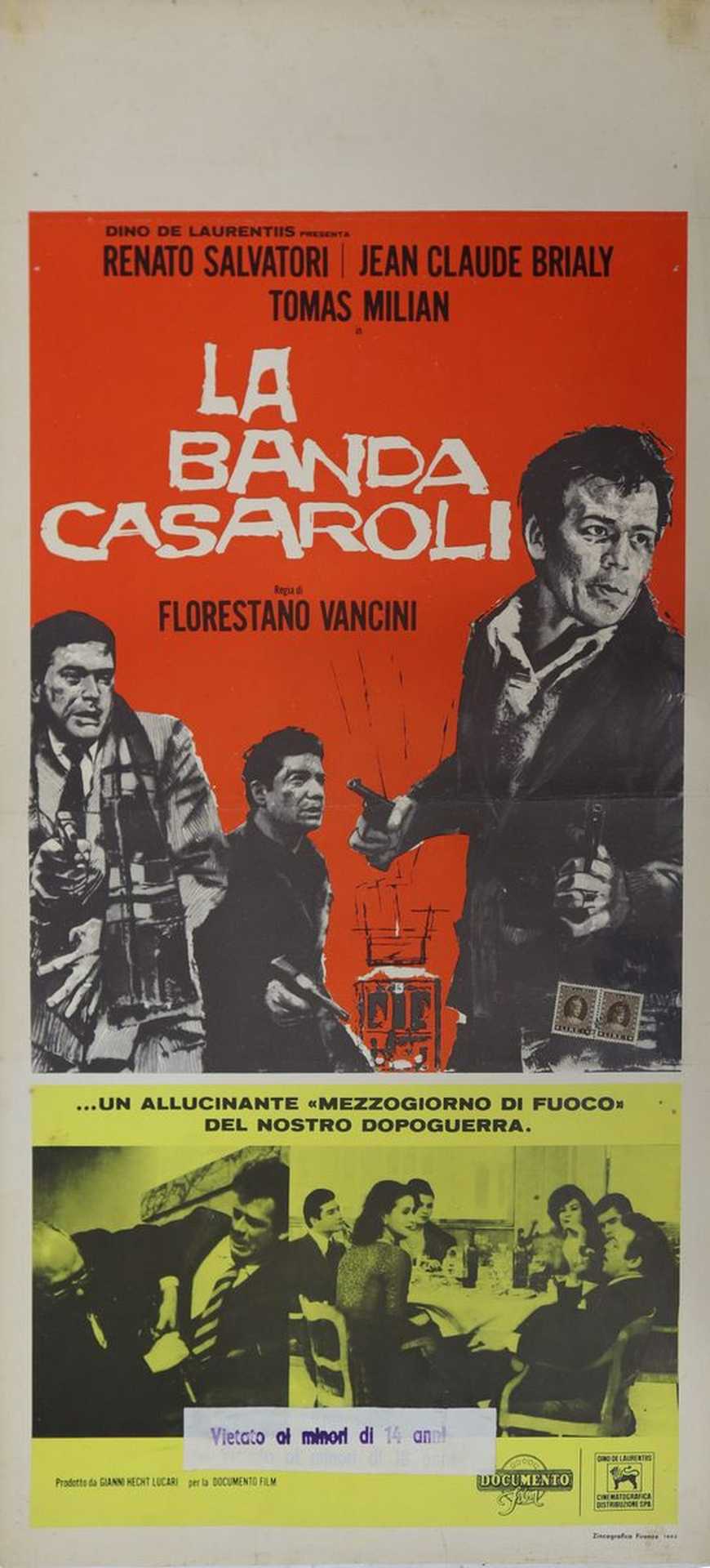 Locandina film ''La banda Casaroli'', 1962 cm 70 x cm 33 Zincografica Firenze, datato in basso a destra, normali segni d'usoZincografica Firenze, datato in basso a destra, normali segni d'uso