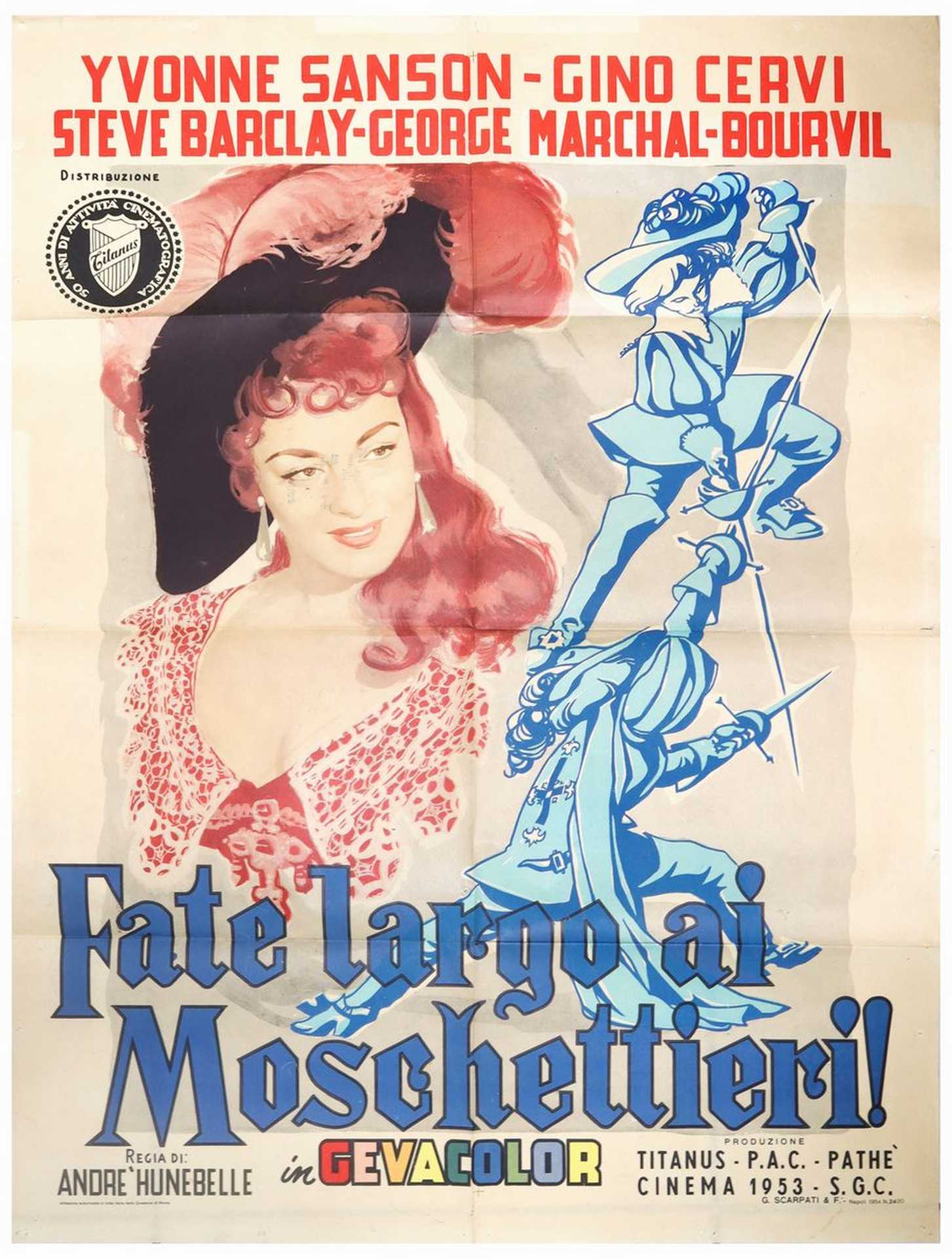 Manifesto cinema due fogli ''Fate largo ai moschettieri!'', 1954