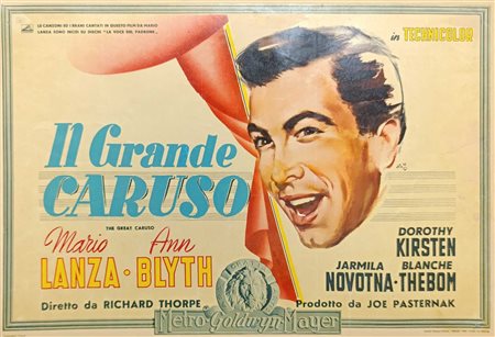 Il grande Caruso raro fotobusta disegnata da Nano (Silvano Campeggi), 1952 h cm 35X50 Mario Lanza. Prima edizione. Buone condizioni, piccoli rinforzi sul retro di adesivo di carta Mario Lanza. Prima edizione. Buone condizioni, piccoli rinforzi sul retro di adesivo di carta