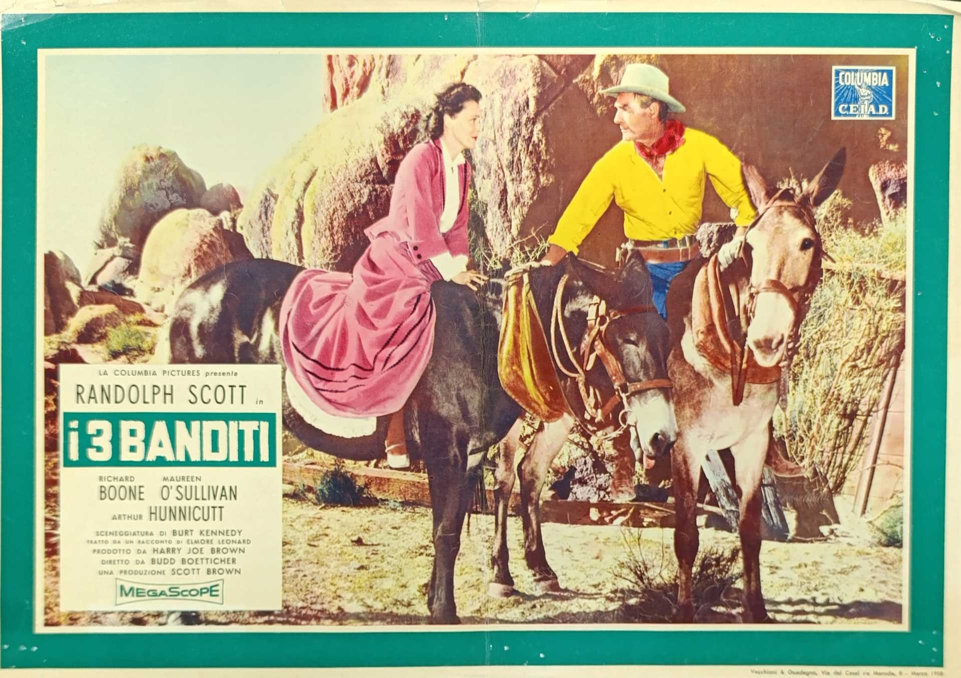 I tre banditi fotobusta, 1958 h cm 35X50 Randolph Scott. Prima edizione, ottime condizioni Randolph Scott. Prima edizione, ottime condizioni