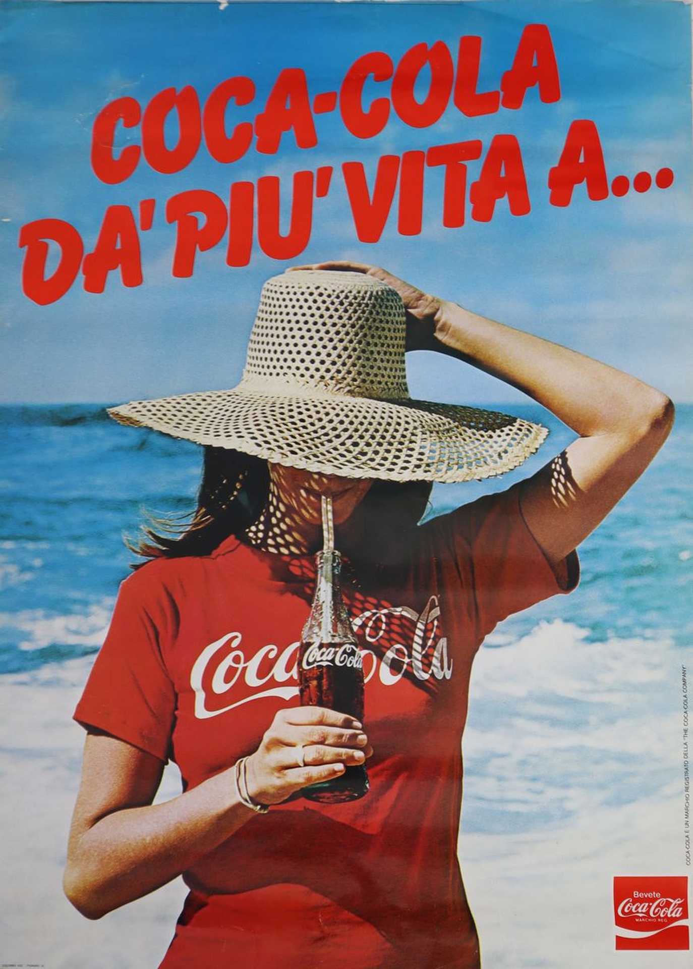 Coca Cola - Poster ufficiale Coca Cola, 1970 h cm 100x70 Con slogan ''Coca-Cola da' più vita a...''. Presenti normali segni del tempoCon slogan ''Coca-Cola da' più vita a...''. Presenti normali segni del tempo
