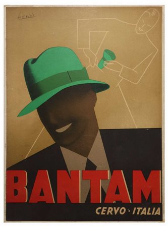 Gino Boccasile - Locandina pubblicitaria originale Bantam, 1930 cm 34x24 Illustrazione Art Deco di Gino Boccasile. Presenti normali segni del tempoIllustrazione Art Deco di Gino Boccasile. Presenti normali segni del tempo