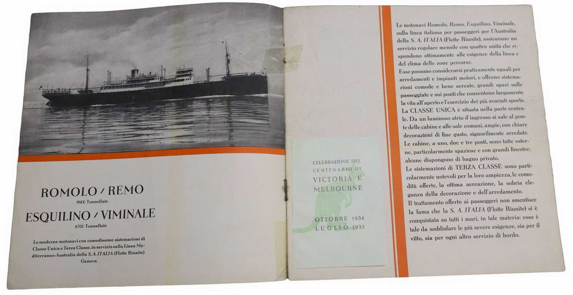Giovanni Patrone - Australia ''Italia'' flotte riunite Piccola brochure con foto e descrizioni delle motonavi 'Romolo, Remo, Esquilino e Viminale'Piccola brochure con foto e descrizioni delle motonavi 'Romolo, Remo, Esquilino e Viminale'