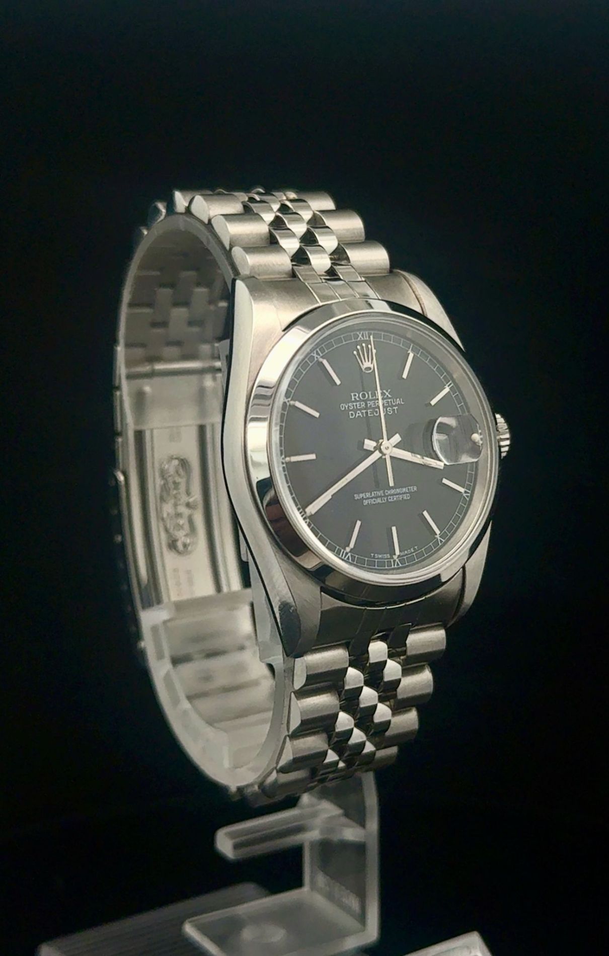 Marca Rolex Modello (Orologio) Datejust 36 Numero di referenza 16200 Carica Automatico Materiale della cassa Acciaio Materiale cinturino Acciaio Anno di produzione 1998 Condizione Ottimo (di seconda mano, segni di usura assenti o appena visibili) Corredo documenti originali, NO BOX Calibro Carica Automatico Cassa Materiale della cassa Acciaio Diametro 36 mm Impermeabile 10 ATM Materiale lunetta Acciaio Vetro Vetro zaffiro Cinturino Materiale cinturino Acciaio Colore cinturino Acciaio Chiusura Déployante Materiale chiusura Acciaio