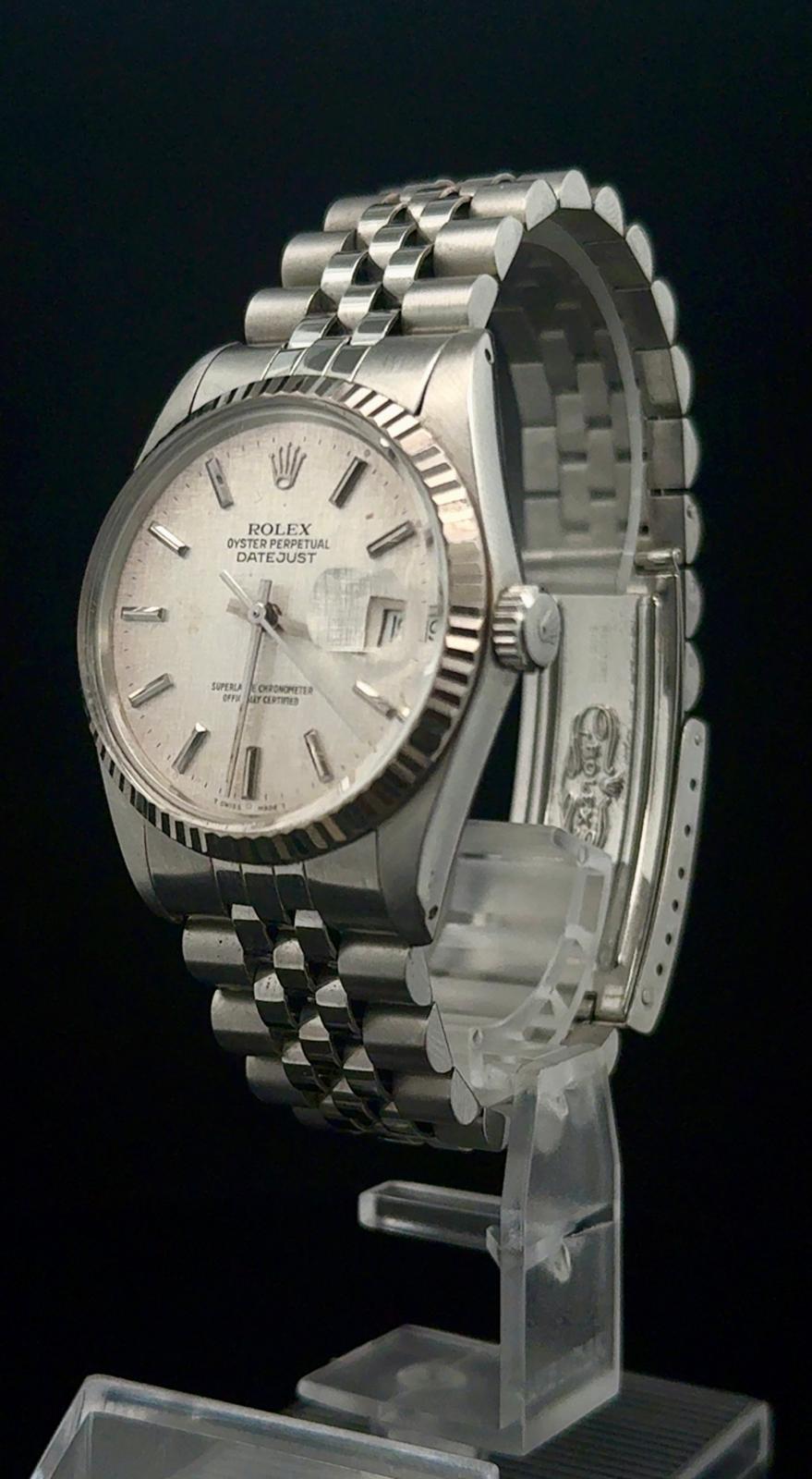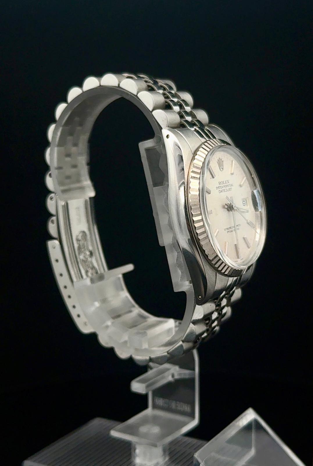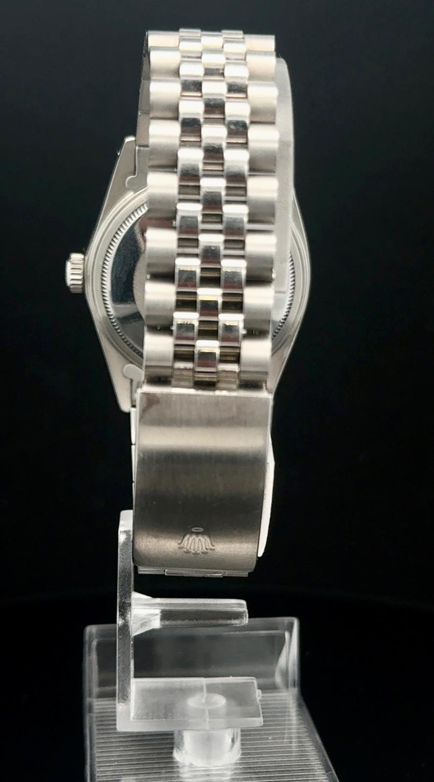 Modello (Orologio) Datejust 36 Numero di referenza 16014 Carica Automatico Materiale della cassa Acciaio Materiale cinturino Acciaio Condizione Ottimo (di seconda mano, segni di usura assenti o appena visibili) Anno 1984 Corredo Senza scatola originale, con documenti originali Rolex Carica Automatico Materiale della cassa Acciaio Diametro 36 mm Impermeabile 10 ATM Materiale lunetta Oro bianco Vetro Plexiglas Quadrante Grigio Numeri sul quadrante Senza numeri Cinturino Materiale cinturino Acciaio Colore cinturino Acciaio Chiusura Déployante Materiale chiusura Acciaio