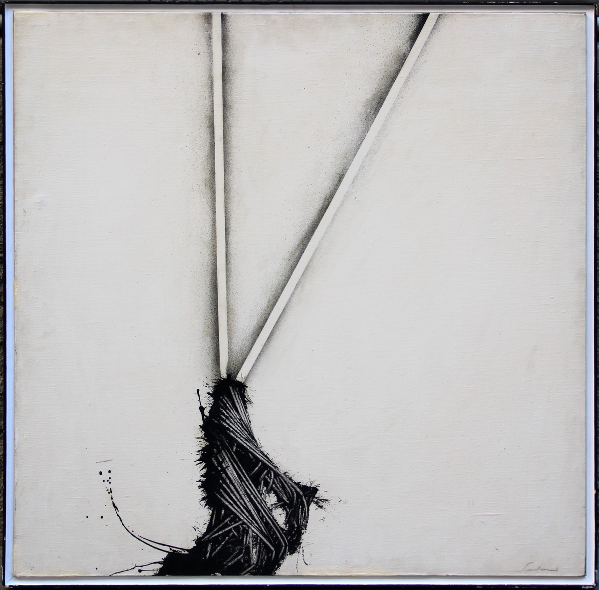 Firma, data, dimensioni, tecnica, titolo "Scanavino, 1972, cm 80x80, olio su tela, Quadro";