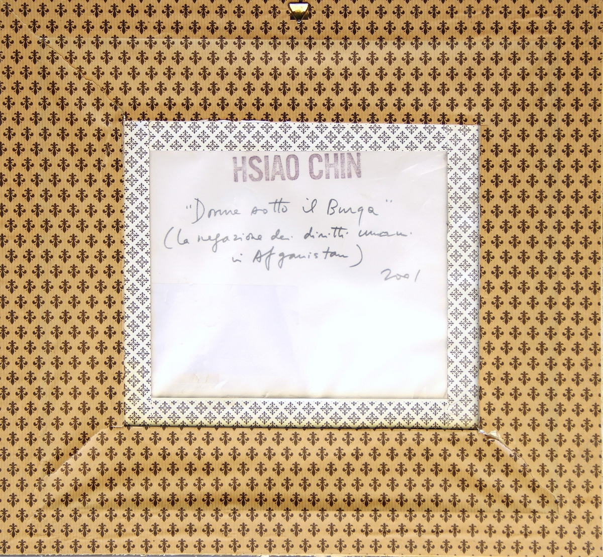 Titolo, data "Donne sotto il burqa (la negazione dei diritti umani in Afghanistan), 2001" (al retro)