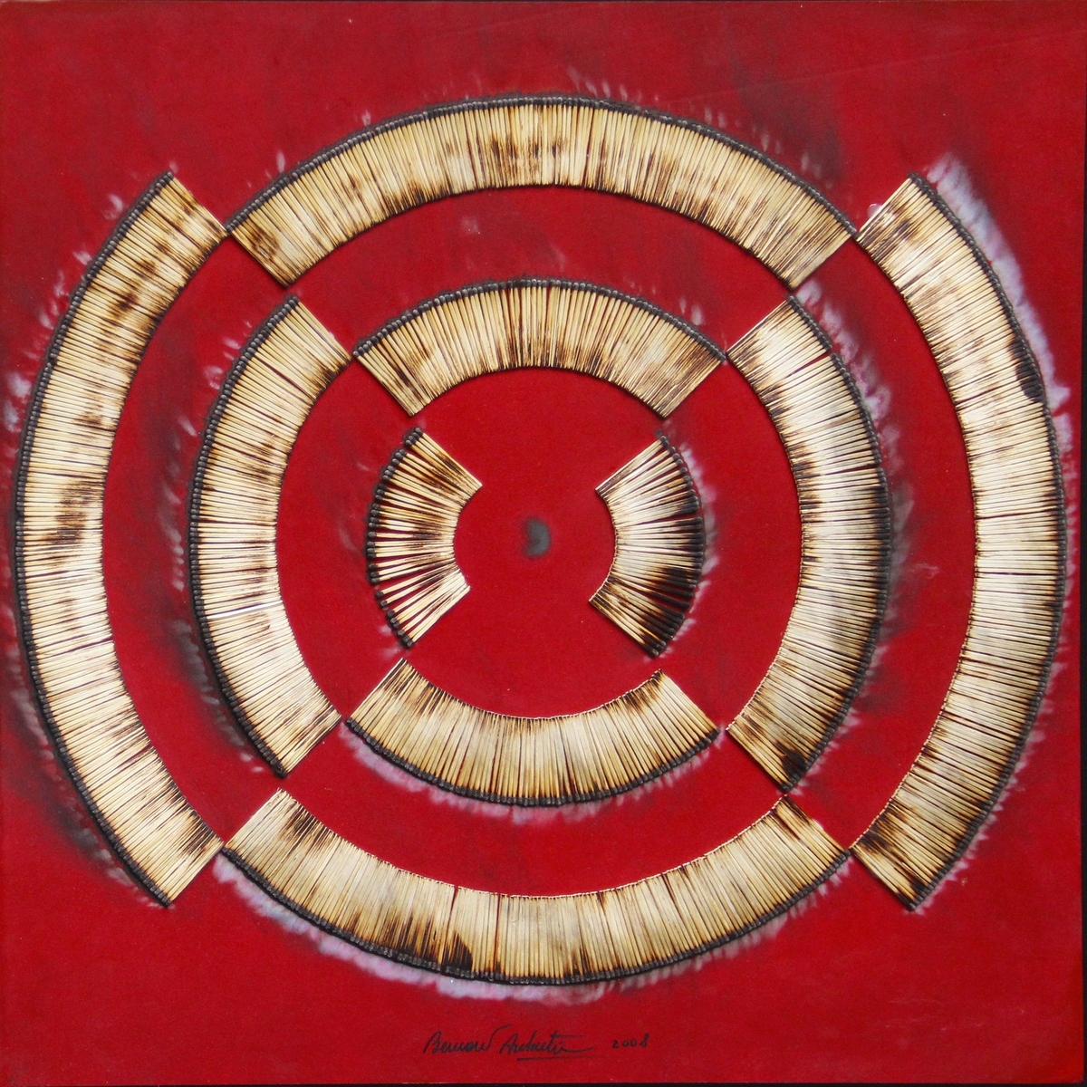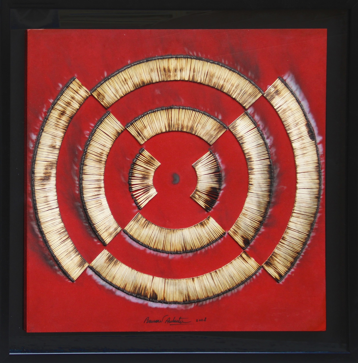 AUBERTIN Bernard, Dessin de feu, 2008, fiammiferi bruciati su tavola, cm 70x70