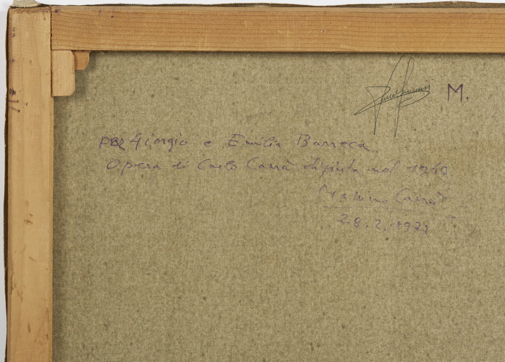 L'opera è accompagnata da certificato di archiviazione dell'Archivio Carlo Carrà, Milano, a cura di Luca Carrà