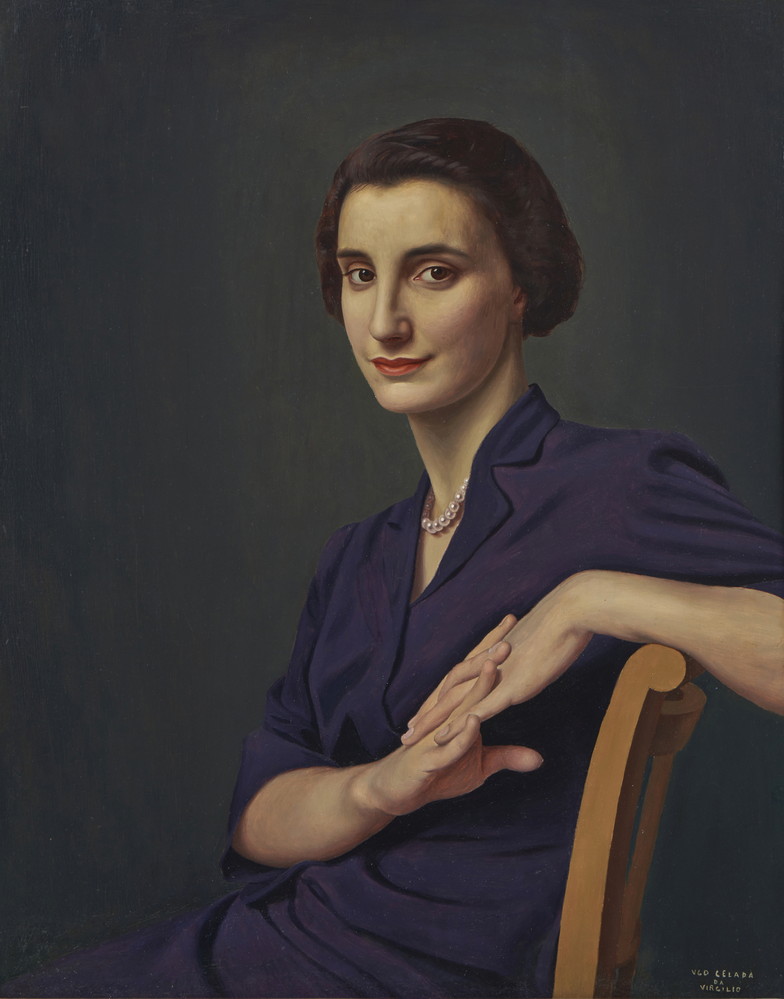 CELADA DA VIRGILIO UGO (1895 - 1995) SENZA TITOLO (RITRATTO DI DONNA). Olio su tavola. Cm 60,00 x 74,50. firma
