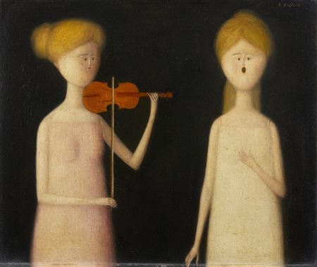 BUENO ANTONIO (1918 - 1985) CONCERTO . 1968. olio su faesite. Cm 60,00 x 50,00. firma