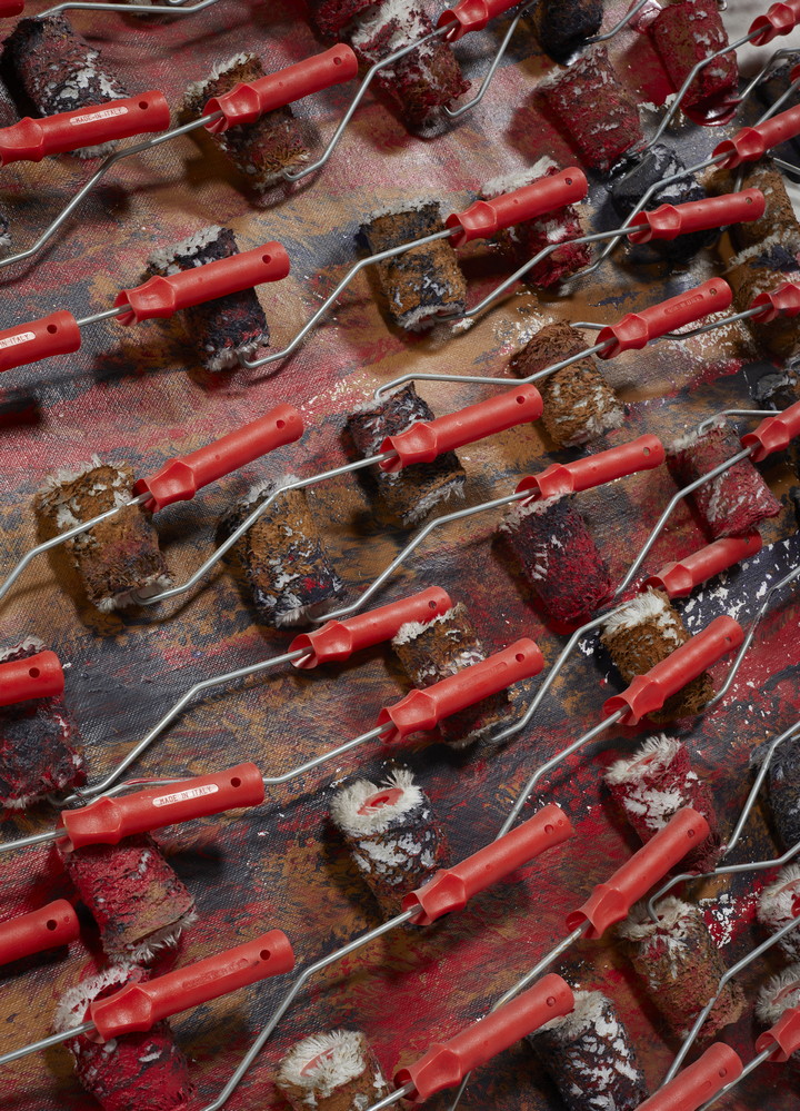 ARMAN FERNANDEZ (1928 - 2005) GENERATIONS APRES GENERATIONS . 1990. Colpi di rullo, rulli e acrilico su tela. Cm 232,00 x 150,00. Firma