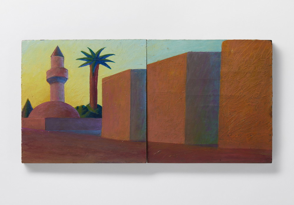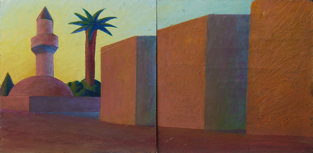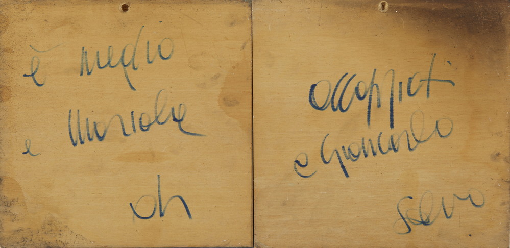 (SALVATORE MANGIONE) SALVO (1947 - 2015) E' MEGLIO ACCOPPIATI (DITTICO). 2004. Olio su tavola. Cm 43,00 x 21,00 x 2,00. sul retro: firma e dedica ad personam
