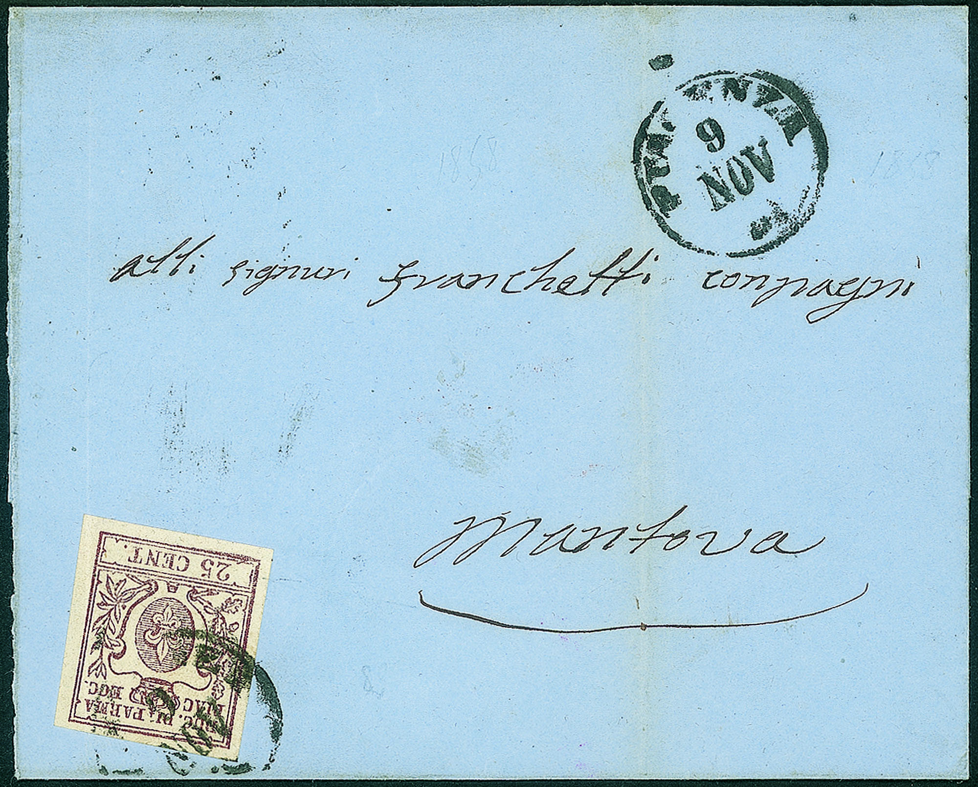Antichi Stati Italiani - Parma - Lettera con 25 cent bruno lilla (10)Da Piacenza 9 nov. 58 per Mantova