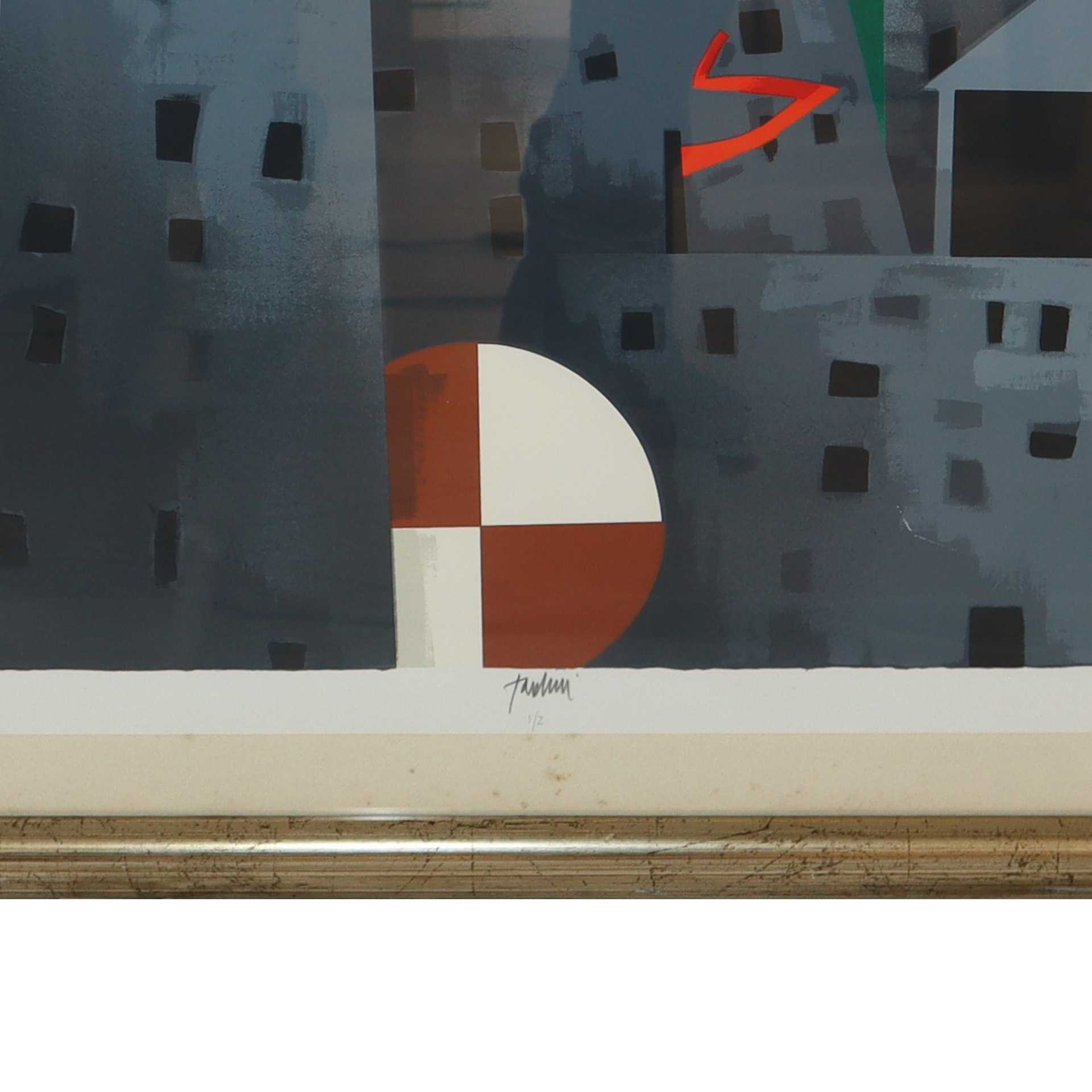 Emilio Tadini (Milano 1927 - Milano 2002) - Case e campo di calcio 73 x 47 cm litografia a colori Firmato al fronte al centro in basso e numerato 1/2
