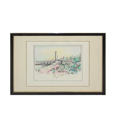Italo Scelza (1939 - 2012) - Paesaggio cm 40 x 50 litografia acquerellata a mano Firmato e numerato al fronte in basso. N°73/120, acquerellata a mano