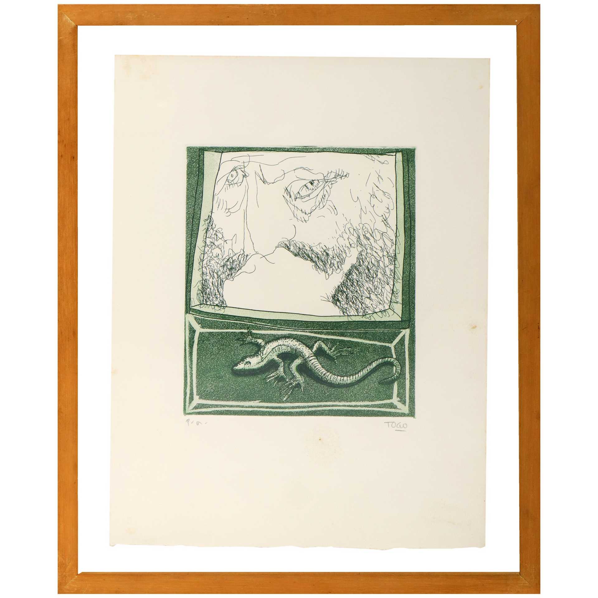 Togo (Milano 1937) - Uomo e lucertola h cm 34,5X25 in cornice h cm 41X32,5 litografia Firmata in basso a destra