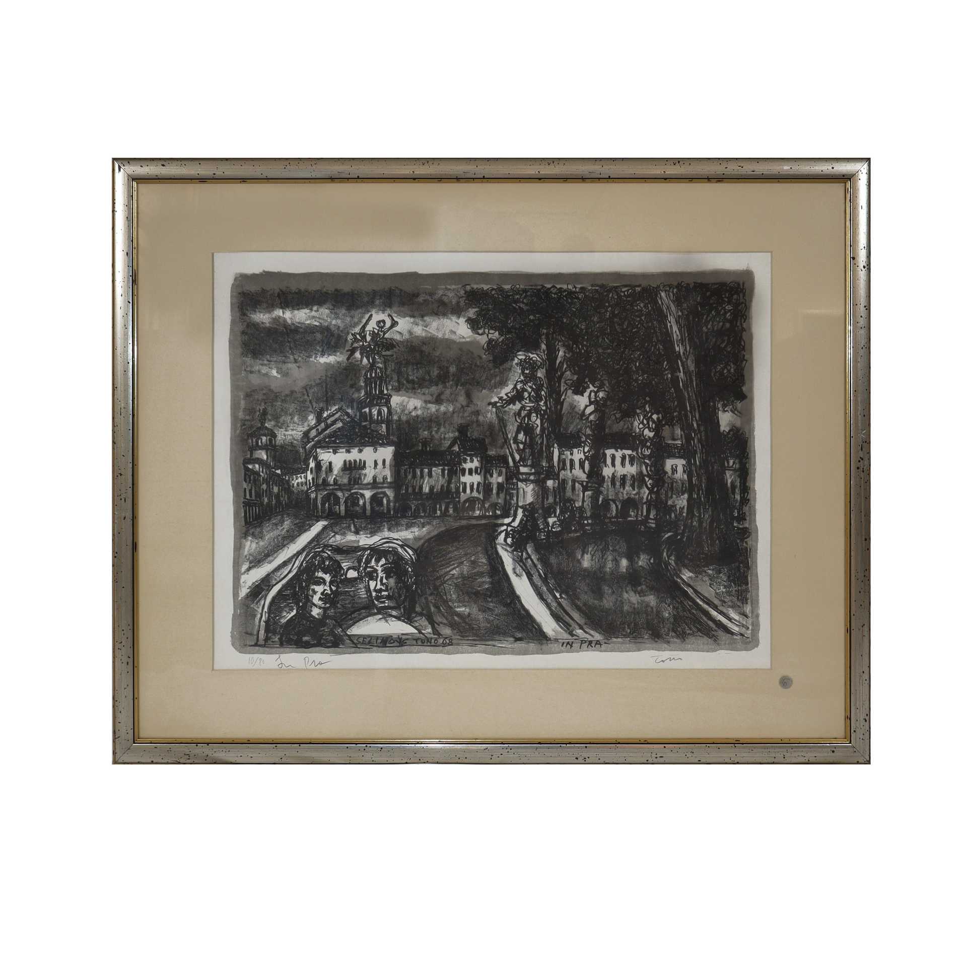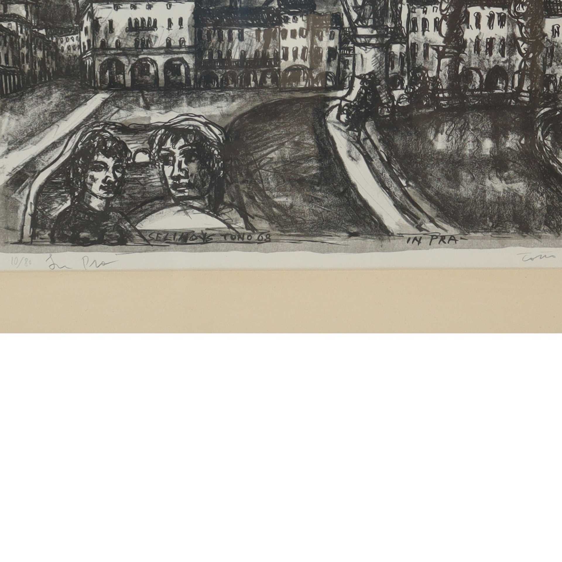 Zancanaro Tono (Padova 1906 - 1985) - Paesaggio e volti nei toni del nero, prova d'autore 45 x 63 cm litografia prova d'autore Firmato al fronte